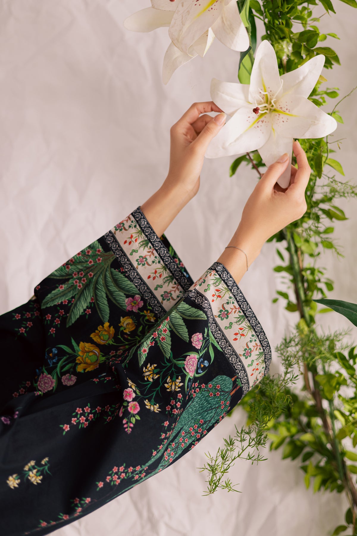 Paired with printed cambric culottes, the outfit offers a modern, breezy silhouette that combines comfort with effortless style.