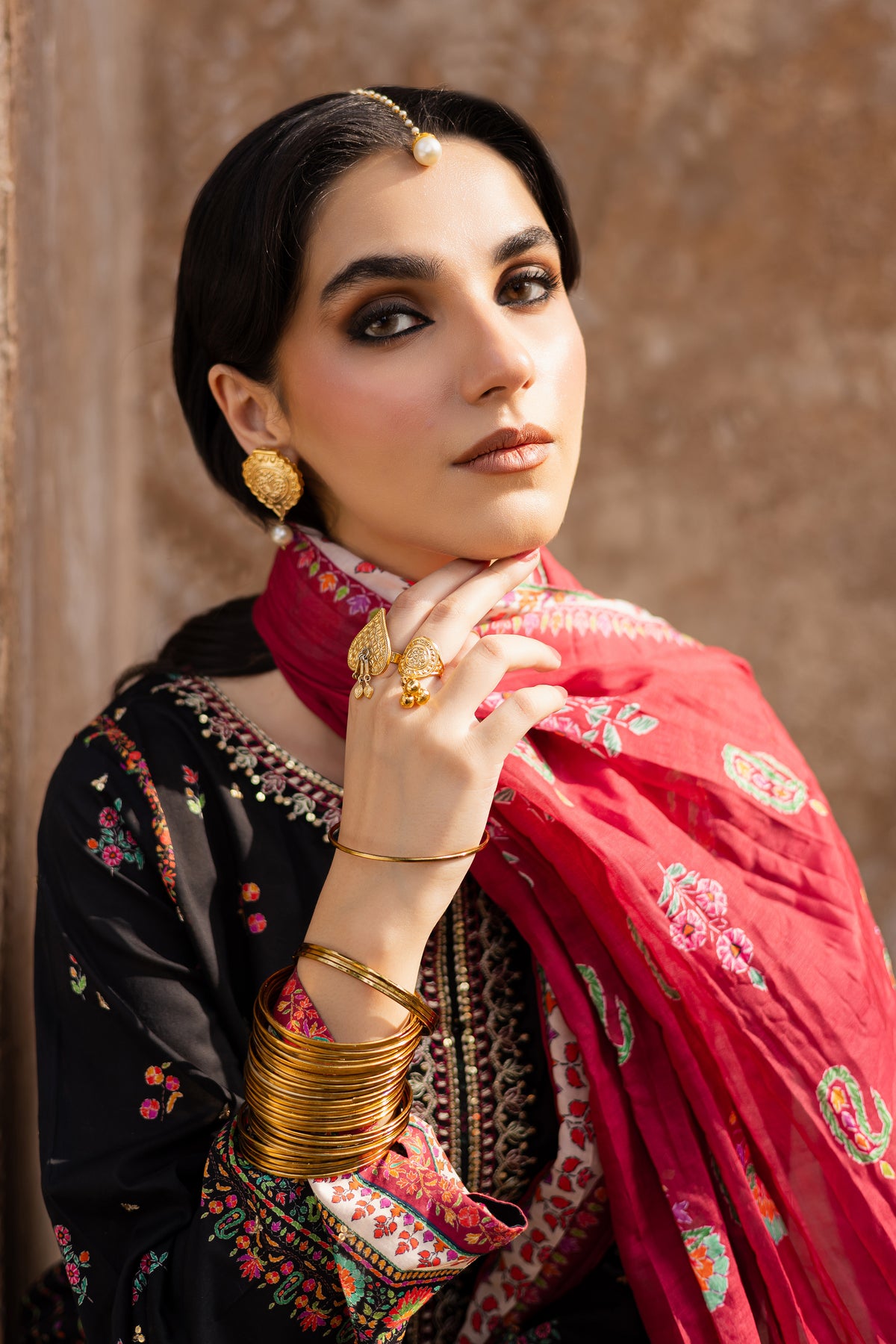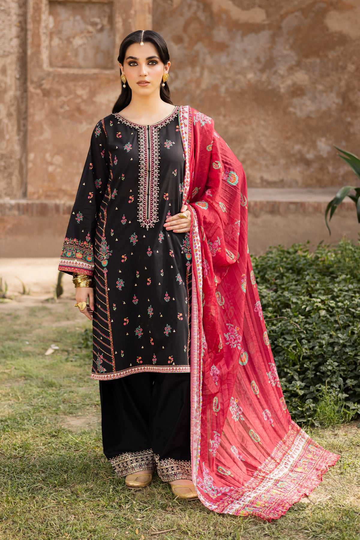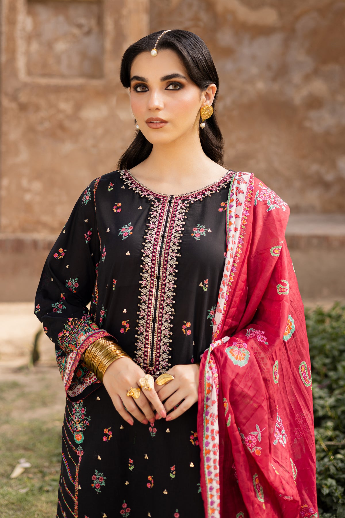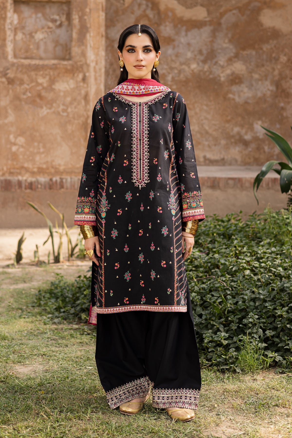 It is paired with an embroidered cambric farshi shalwar that adds traditional charm and graceful flair, beautifully balancing comfort and style.