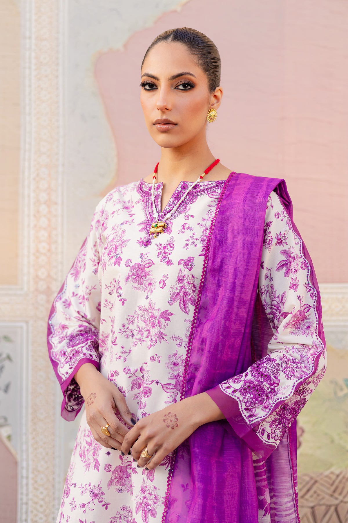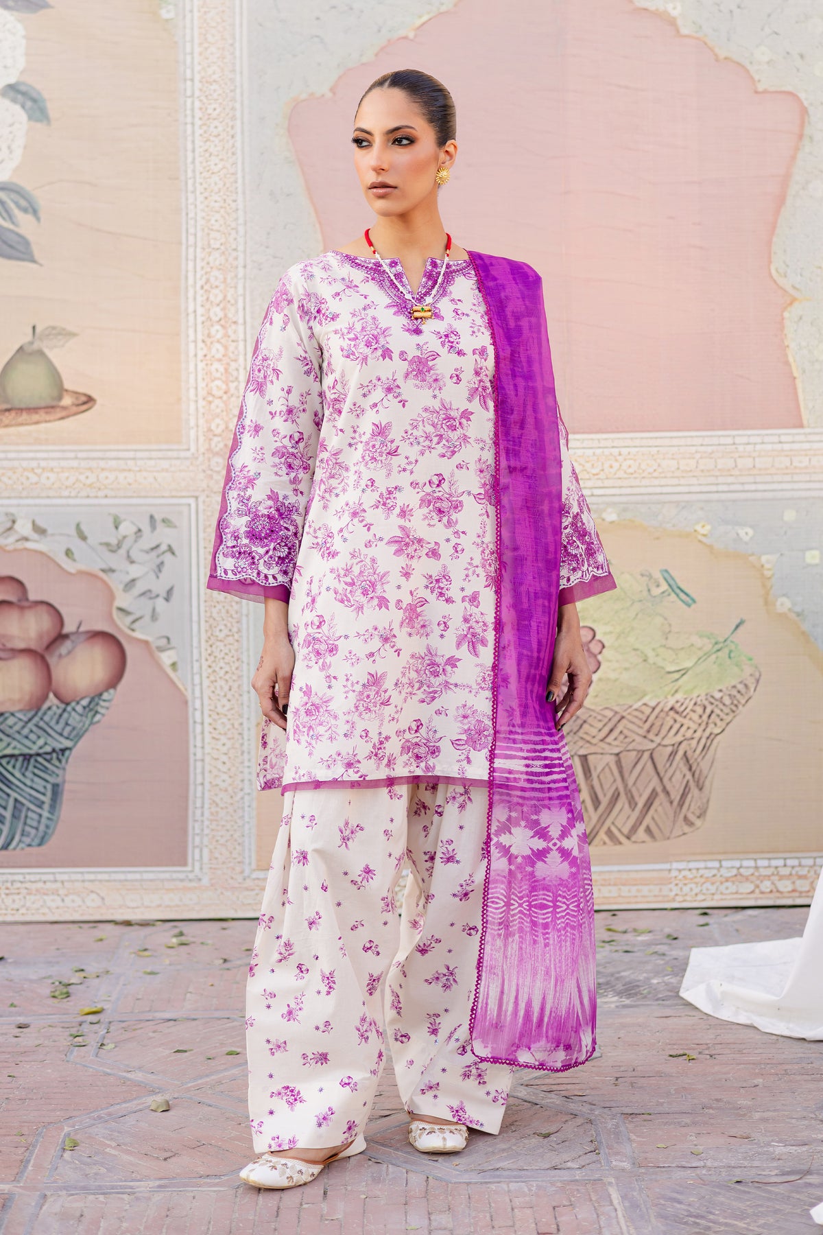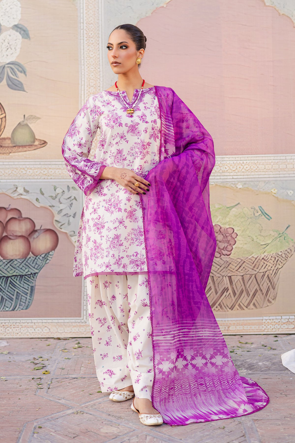 This off white mid-length lawn shirt features an intricately embroidered neckline and sleeves, enhancing its elegance with delicate detailing. The sleeves are further elevated with a sheer wavy organza patti at the center, adding a unique and graceful touch to the design.