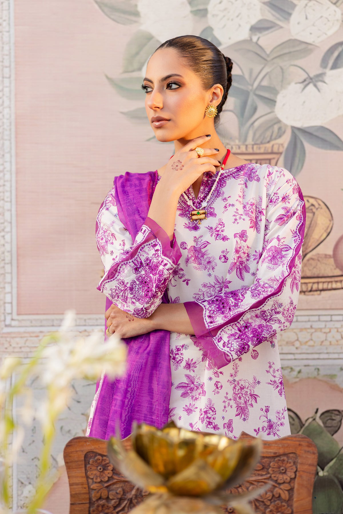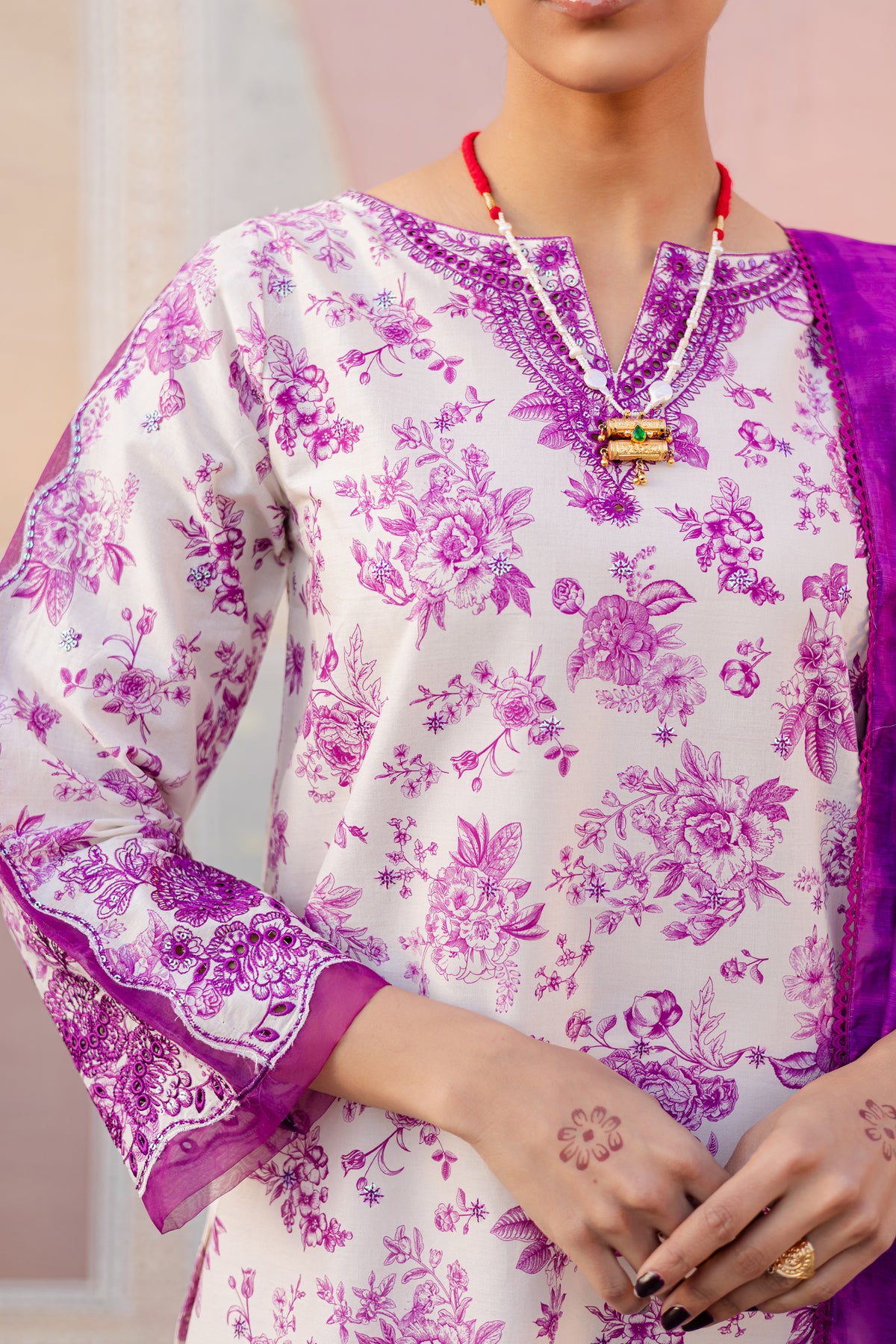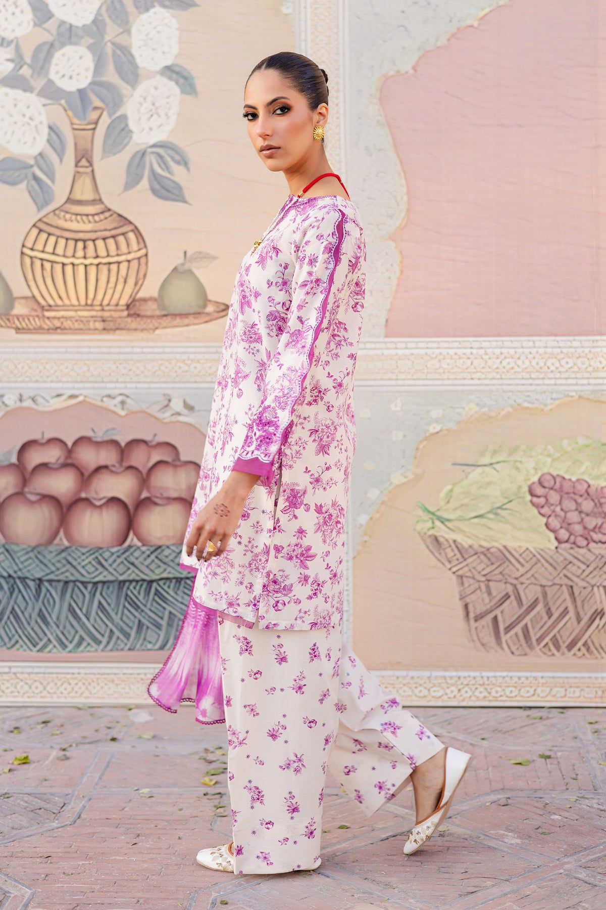 This off white mid-length lawn shirt features an intricately embroidered neckline and sleeves, enhancing its elegance with delicate detailing. The sleeves are further elevated with a sheer wavy organza patti at the center, adding a unique and graceful touch to the design.