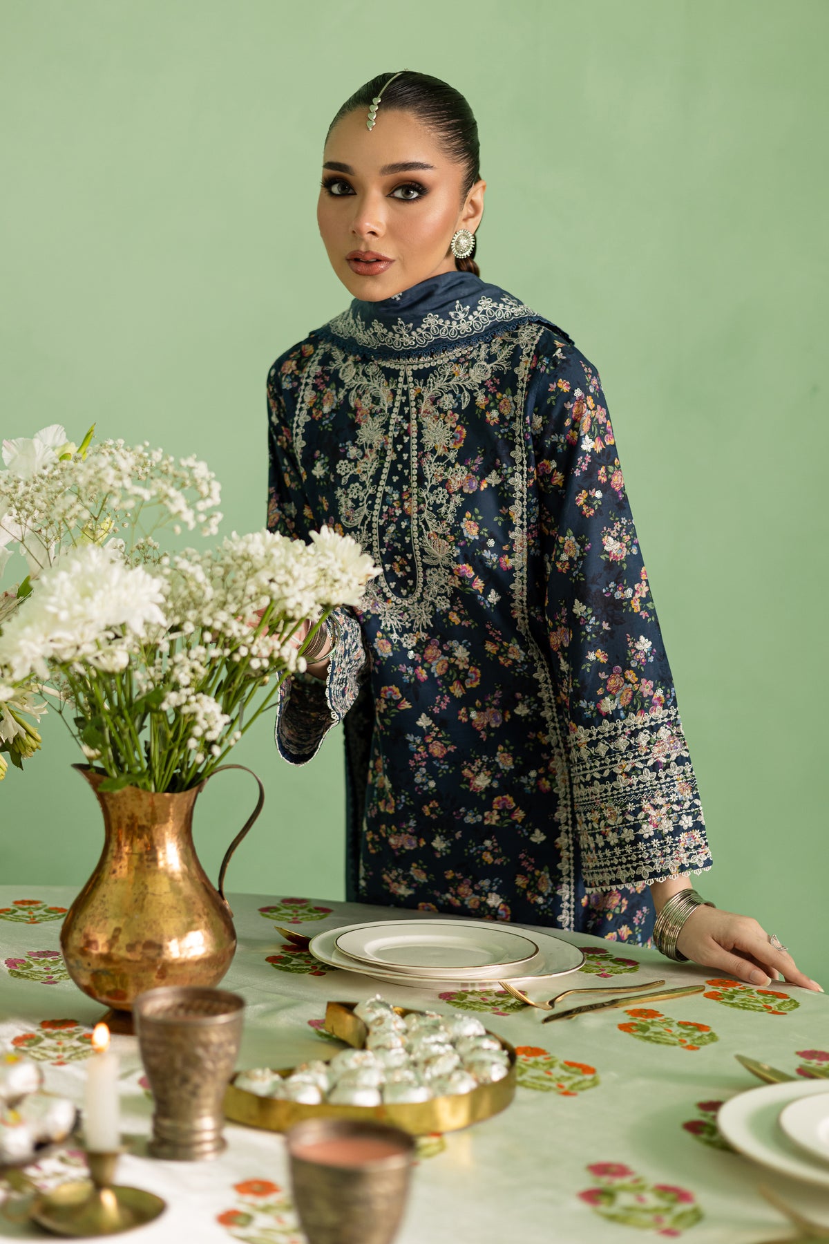 This panelled pima lawn shirt with an embroidered neckline and spread at the front is a true testament to craftsmanship, blending delicate embroidery with sophisticated design. The lace finish along the edges adds a soft, feminine touch, elevating the shirt with subtle elegance and grace.The heavy embroidered border at the sleeves, along with the embroidered spread, is a striking feature that enhances the shirt’s regal feel. Finished with lace, these details create a harmonious blend of tradition and modernity, making it a perfect statement piece for any festive occasion.