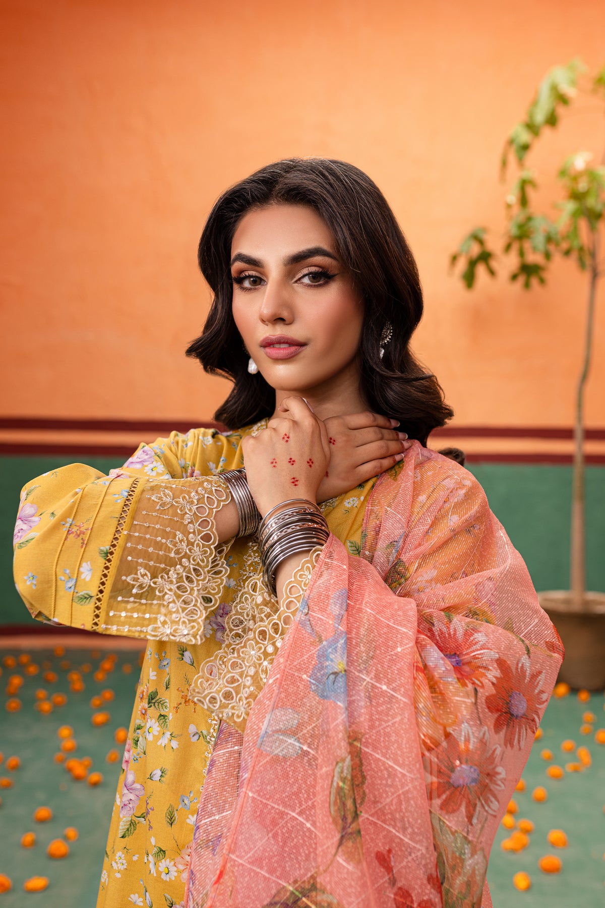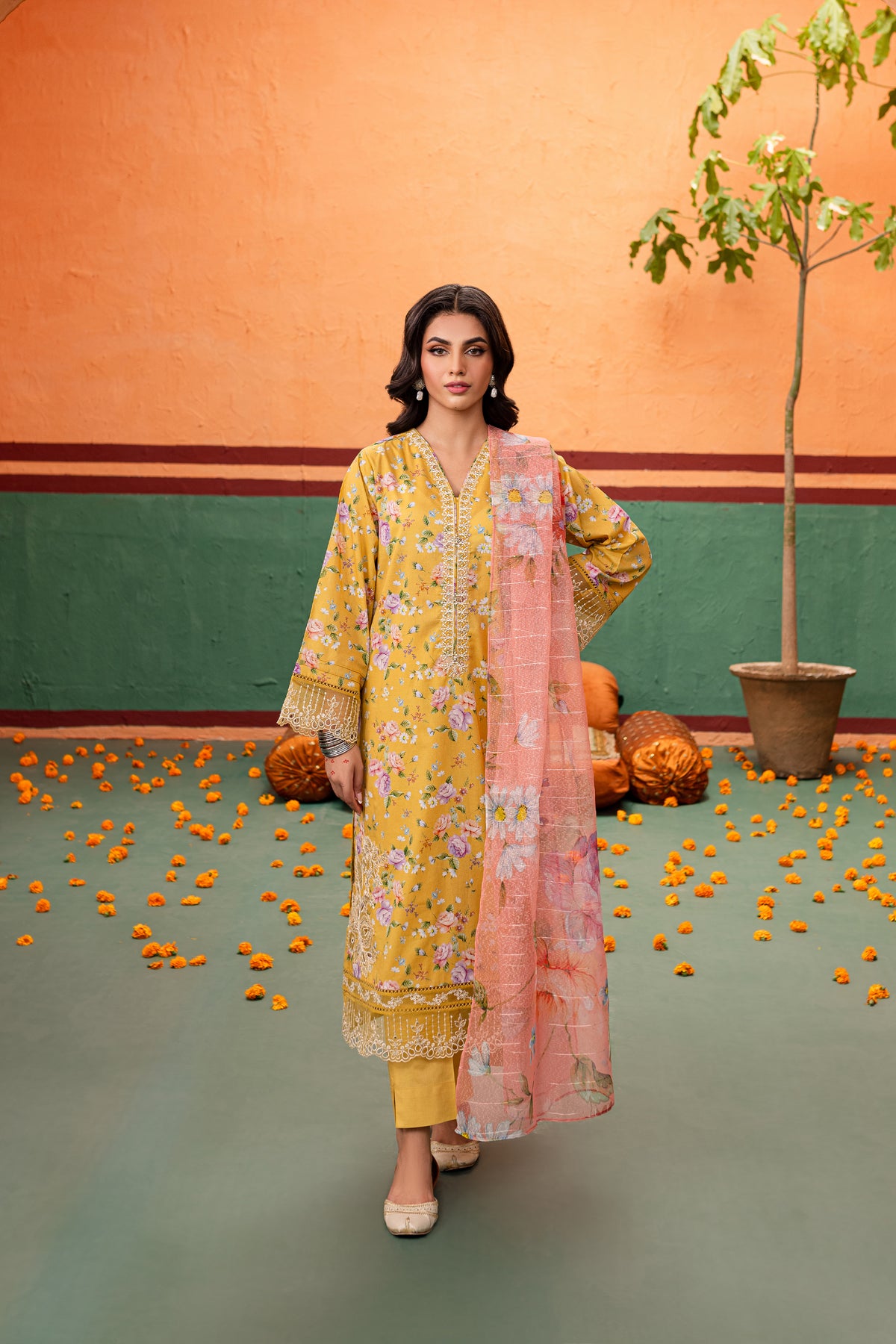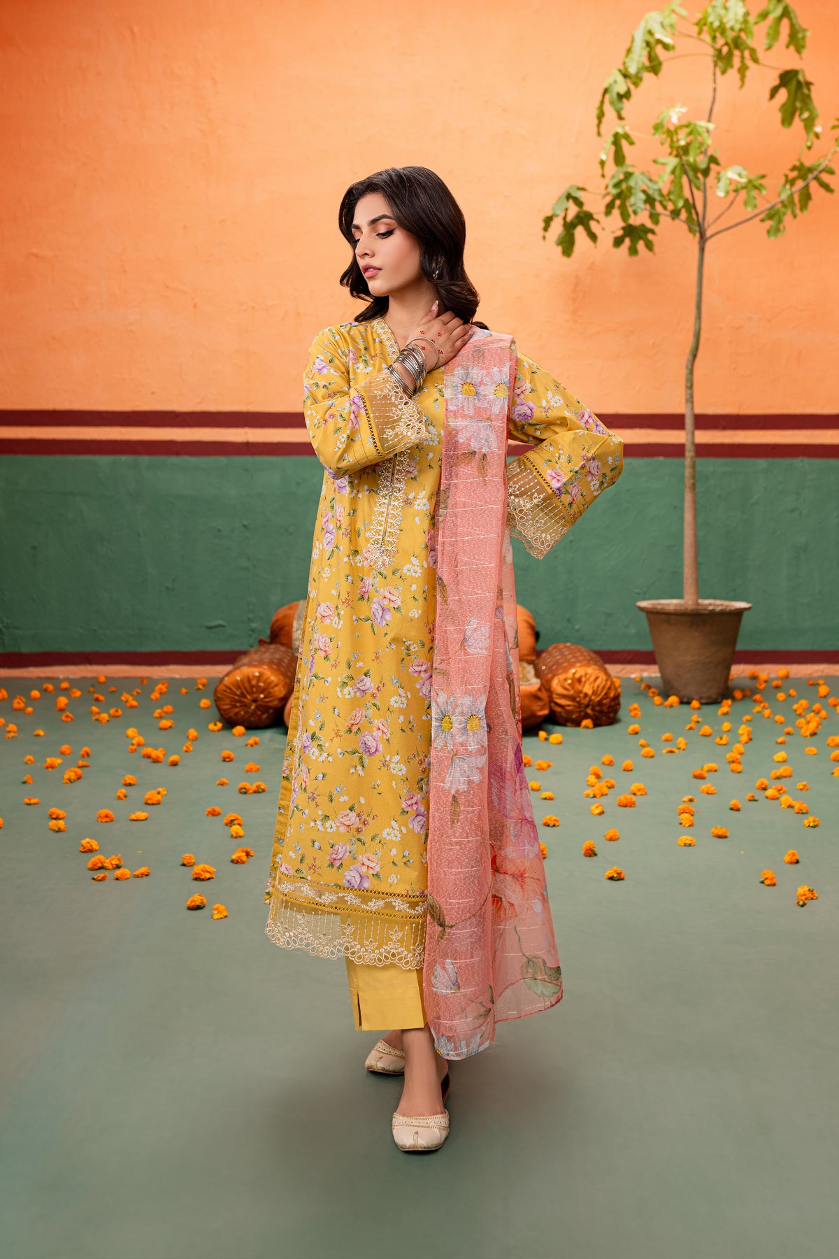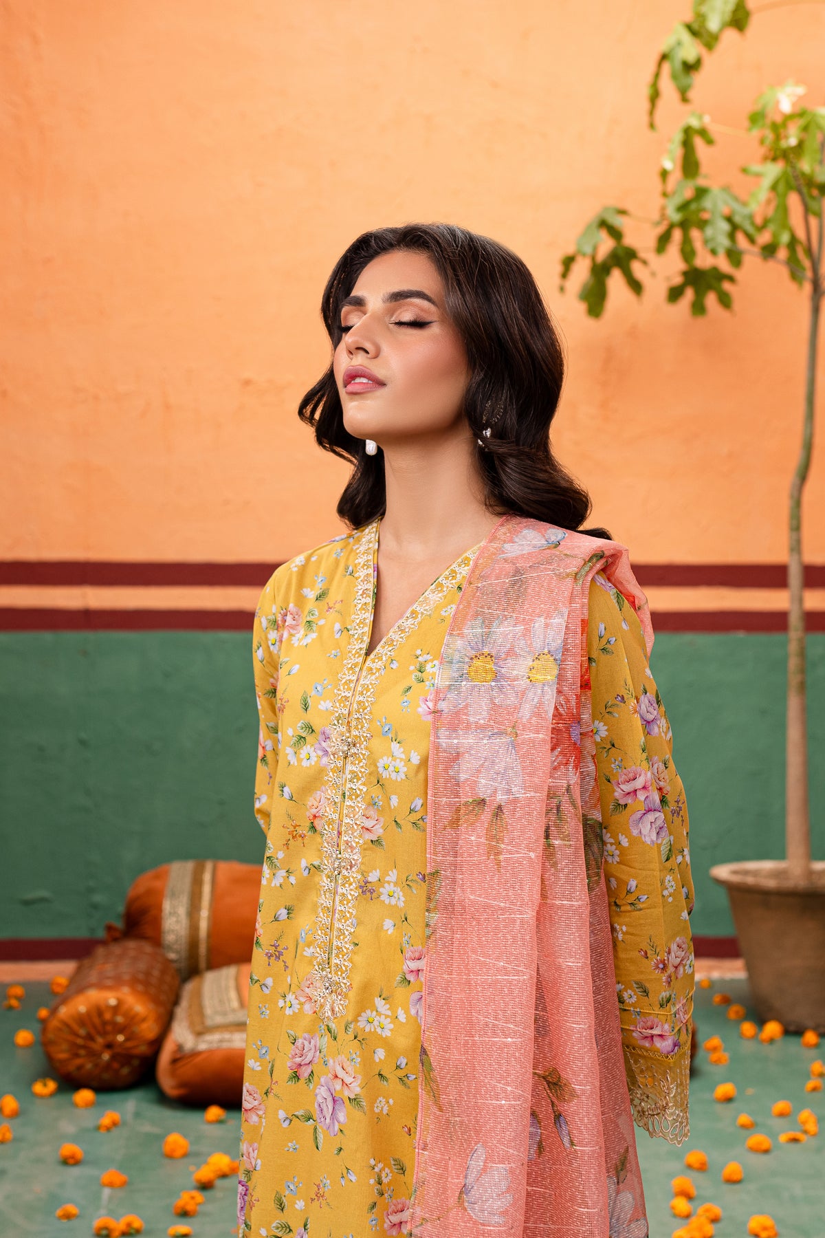 Celebrate this season in style with our printed fit made from the finest quality Pima lawn in the shades of yellow, featuring timeless patterns. Finely printed long length shirt features schiffli embroidered patches at hem and sleeves with intricate embroidery at neckline.