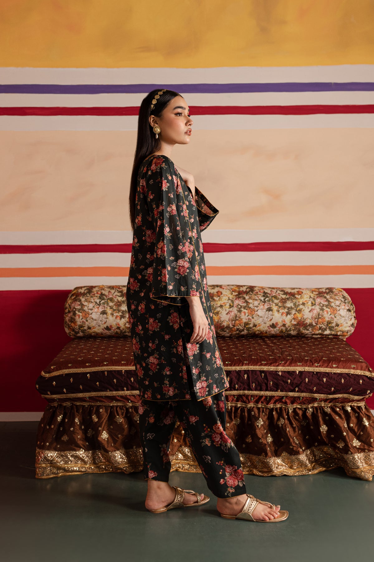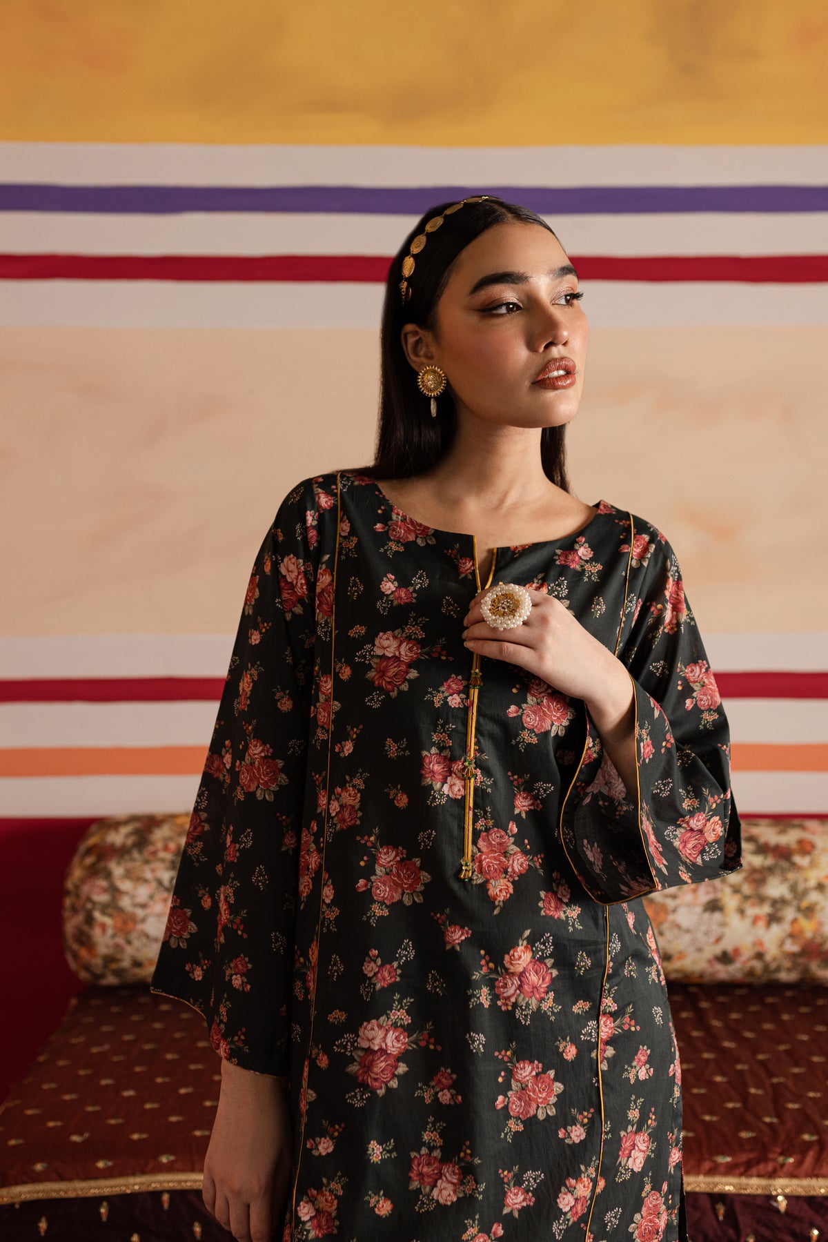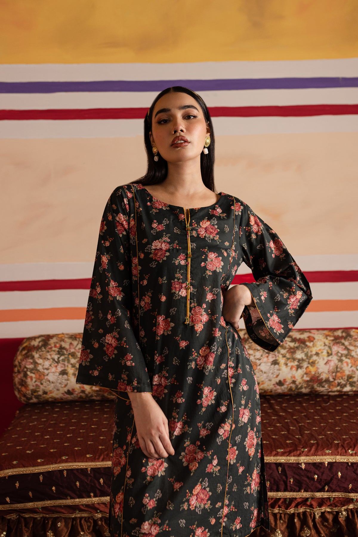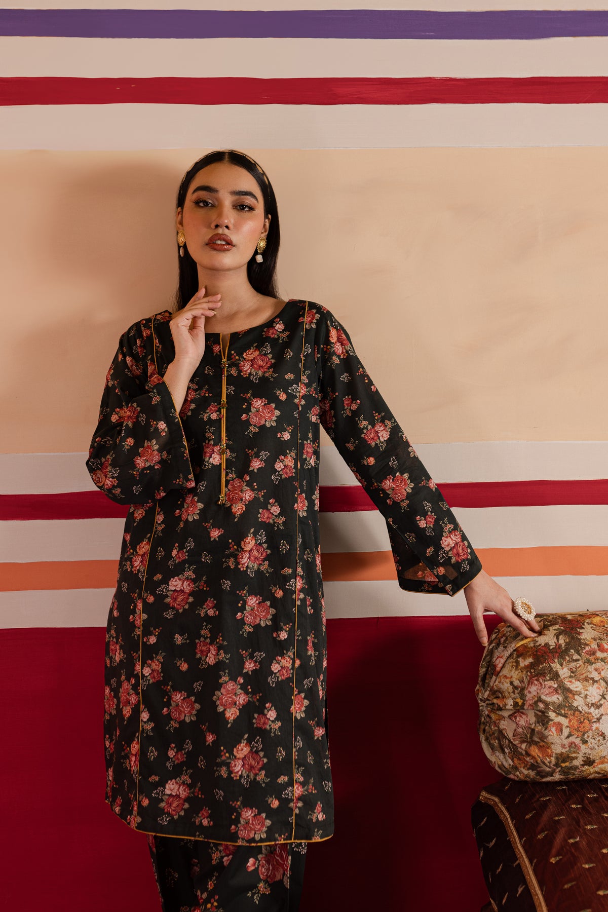 Paired seamlessly with matching printed cambric shalwar providing grace and comfort.