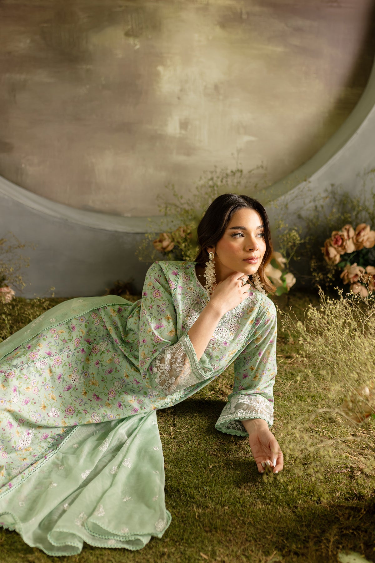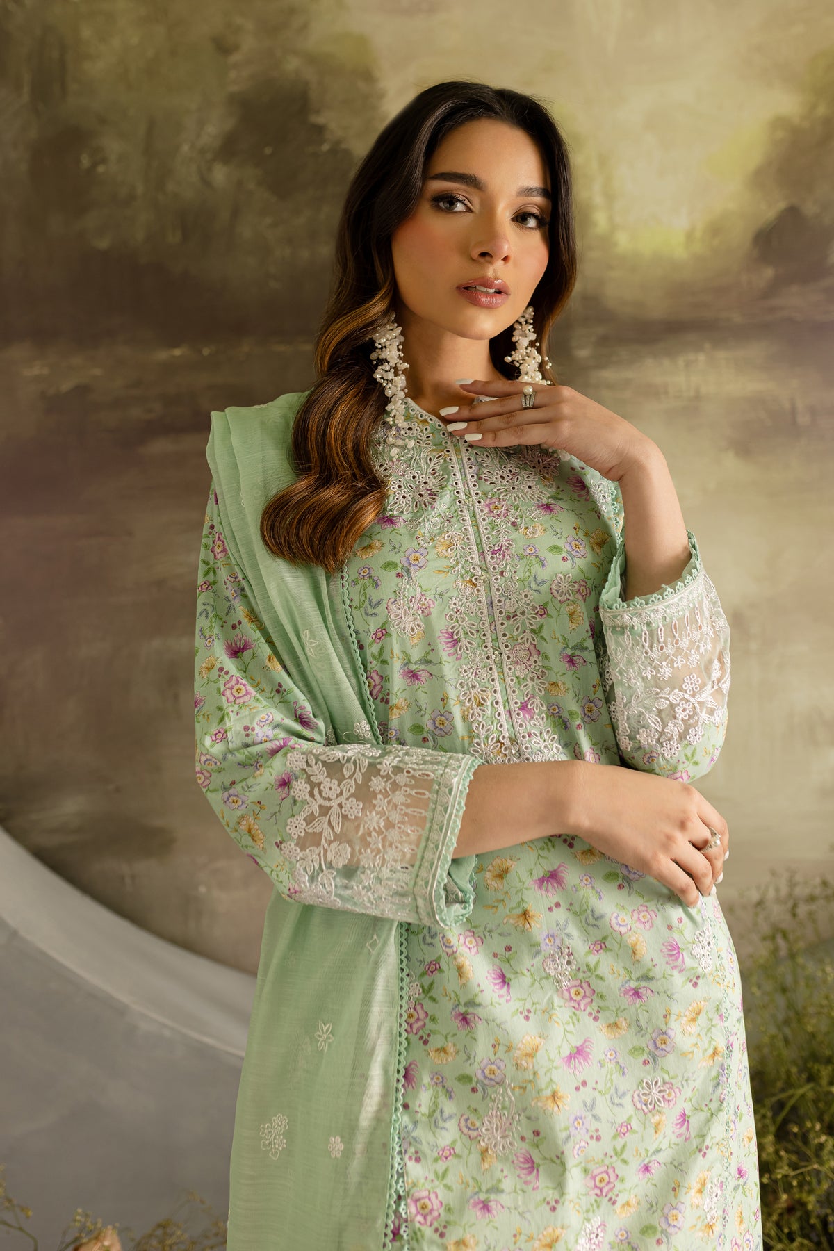 Completing the look is the dyed embroidered monar dupatta, which adds a graceful touch.
