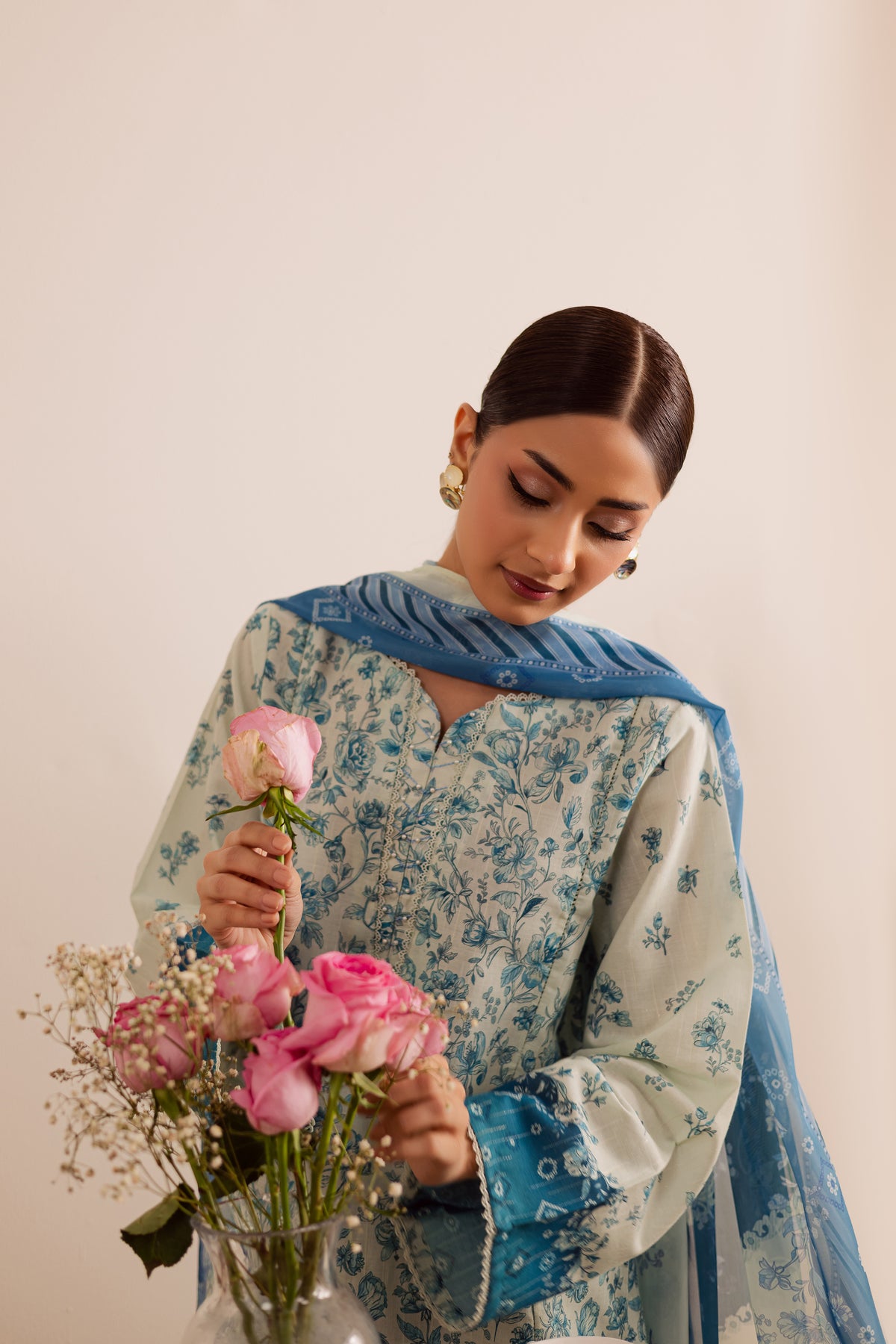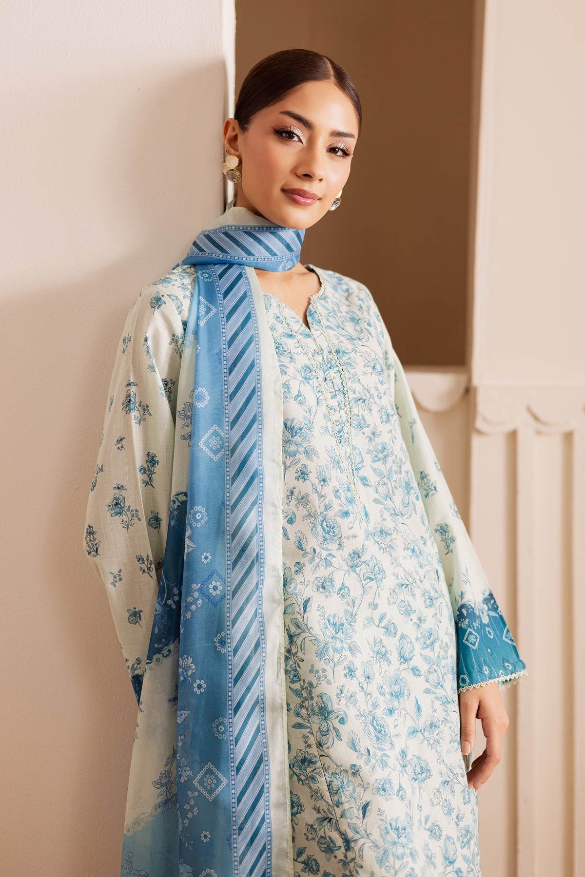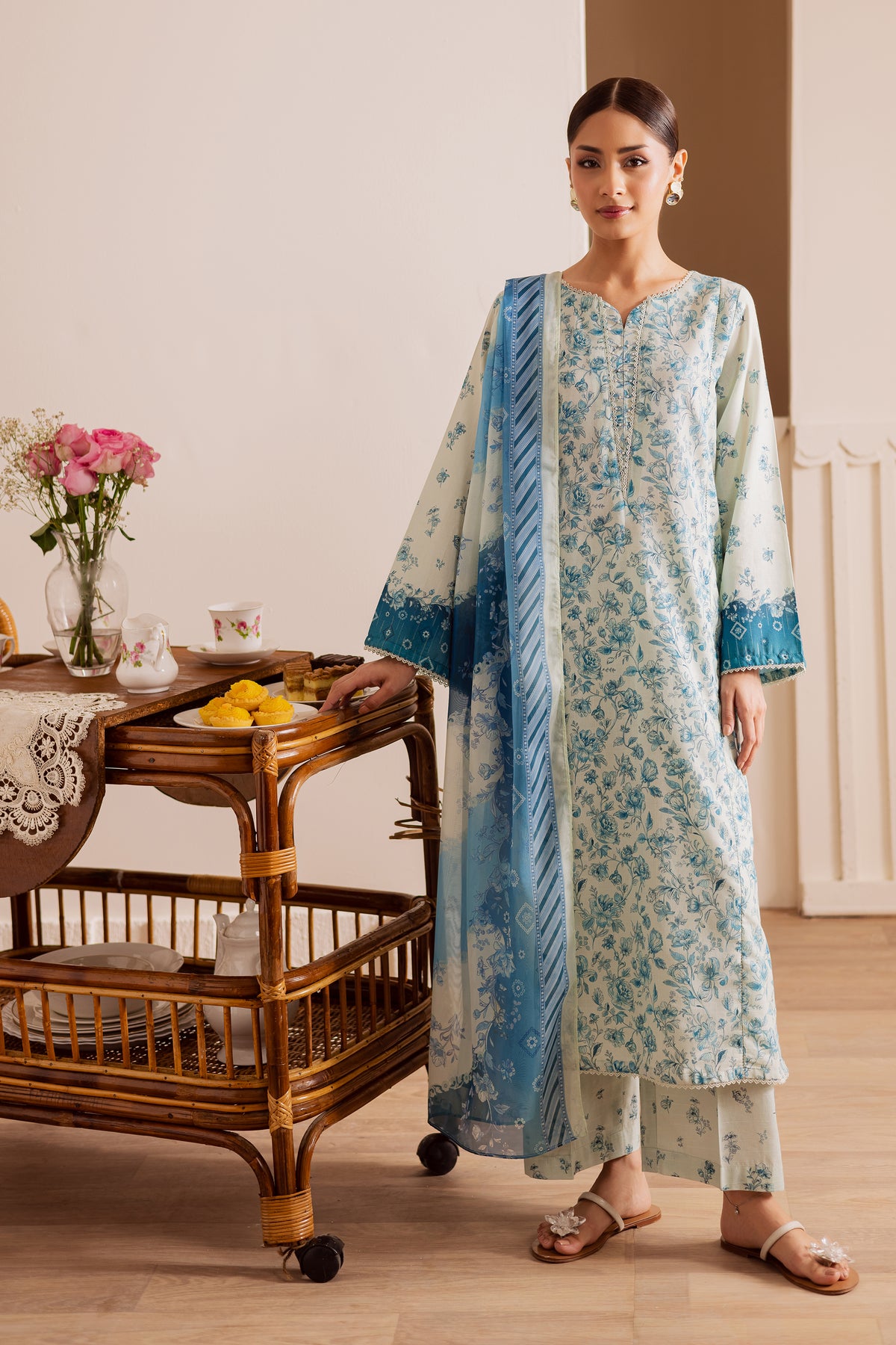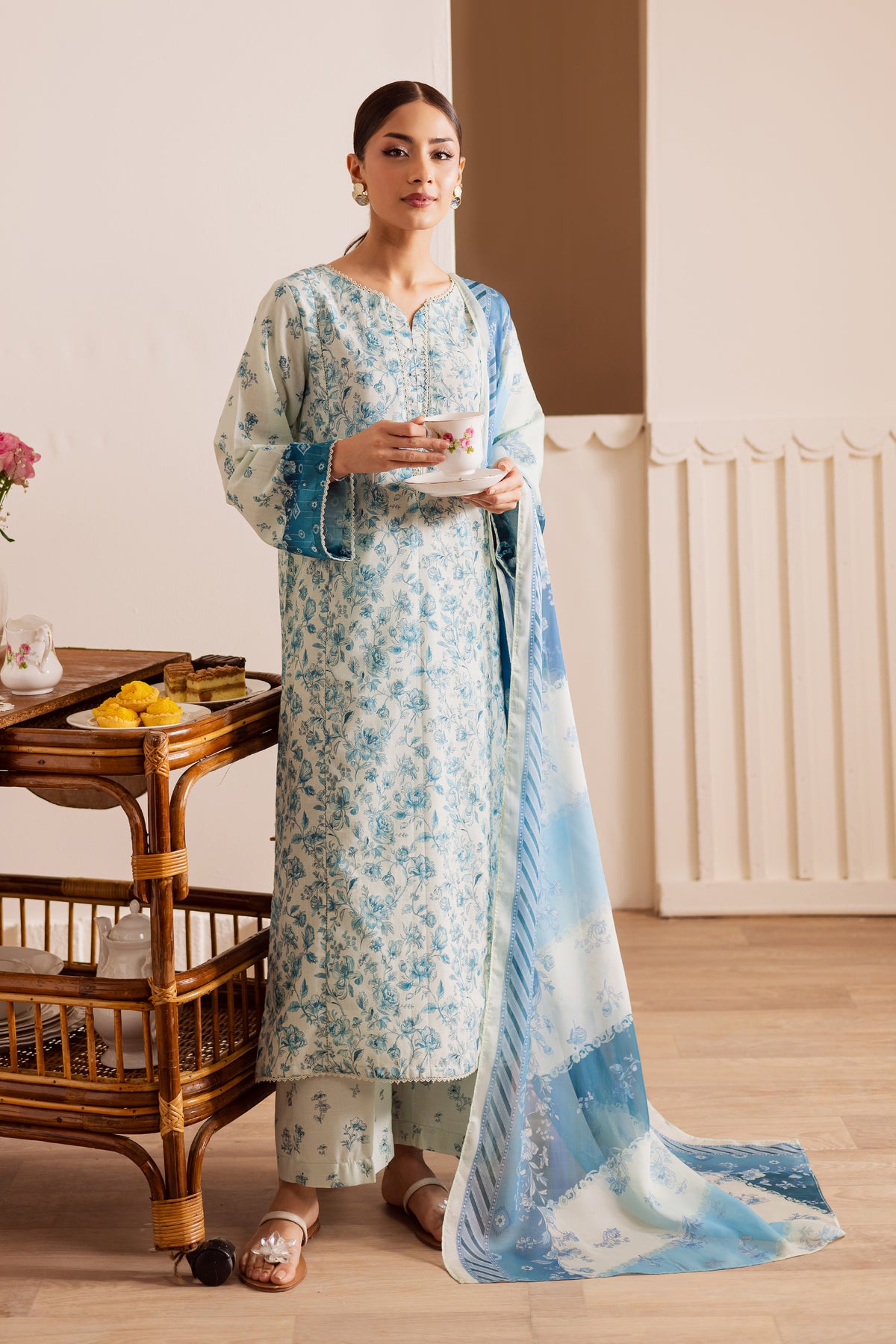 The outfit is completed with a medium silk dupatta, lending a soft, graceful drape and a luxurious finish to the look.