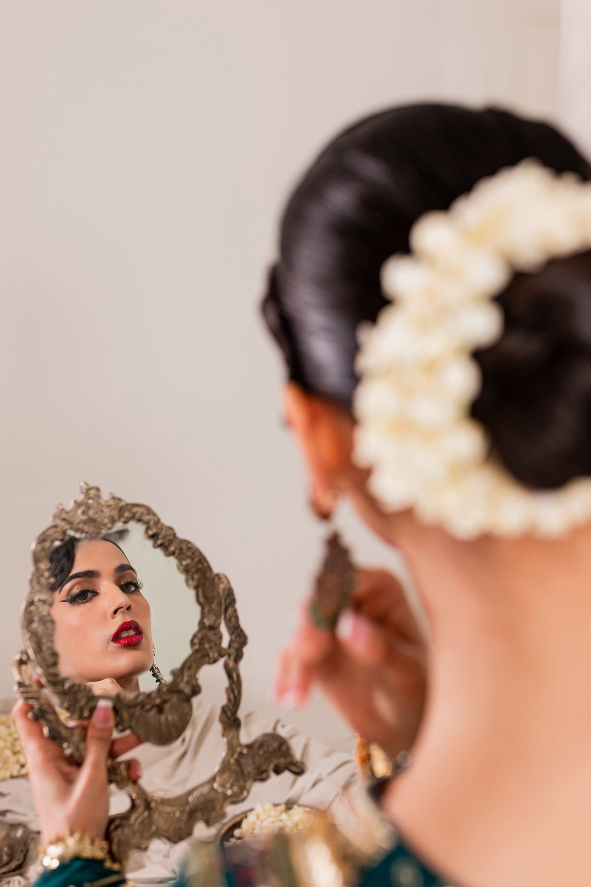 Elegantly crafted embroidered organza dupatta in self-tones featuring embroidered borders on all sides further enhanced with kiran fancy gota lace embellishments.