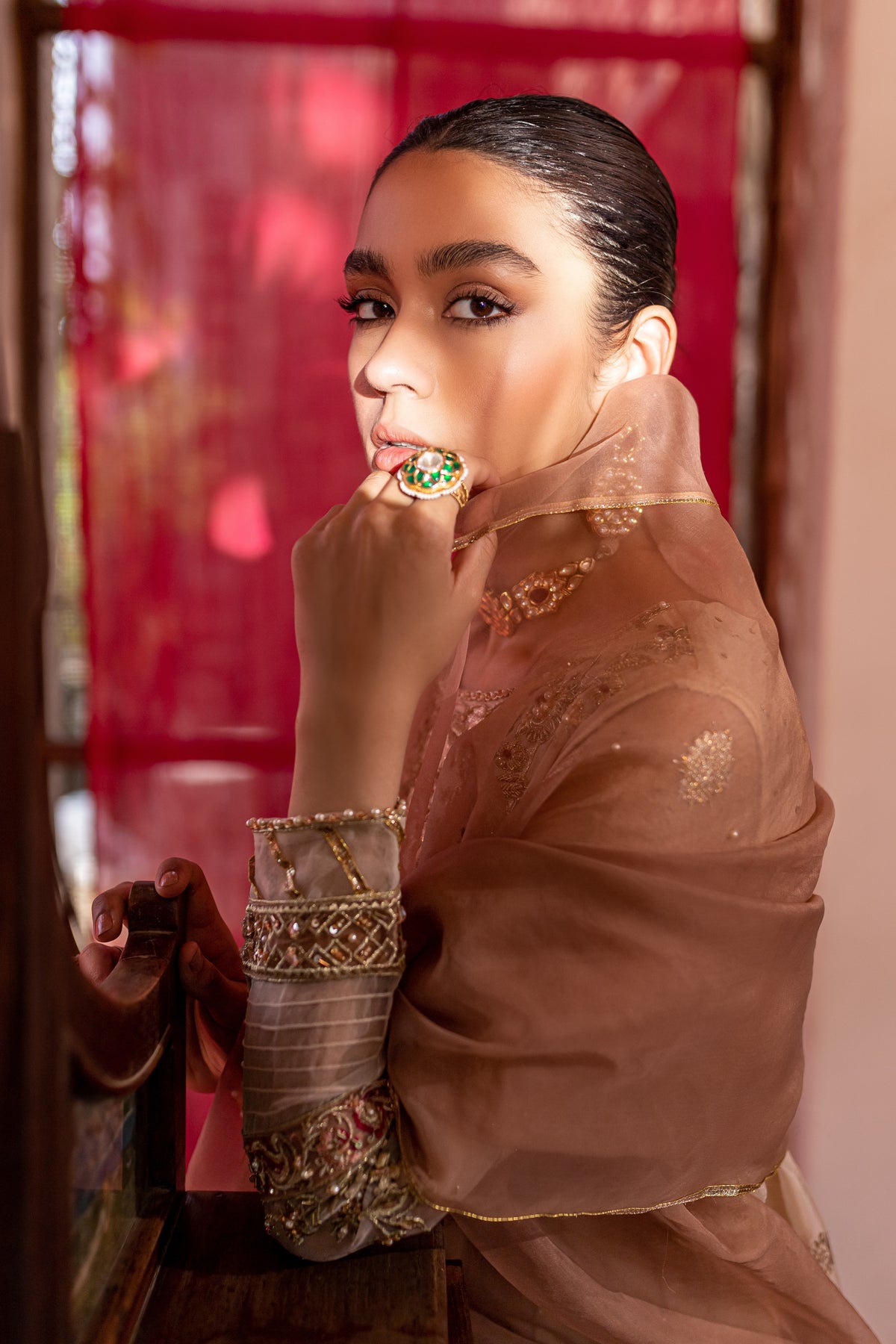 Embroidered organza dupatta featuring lace embellishments