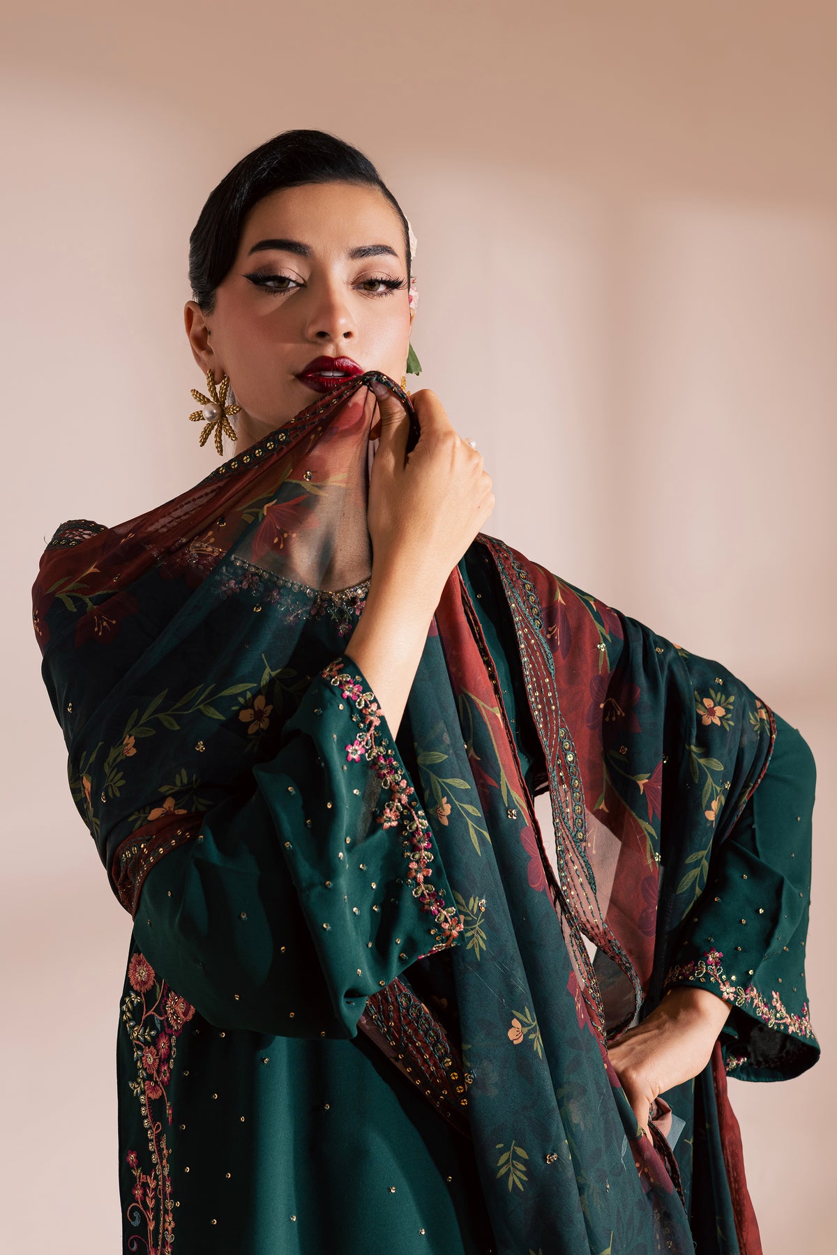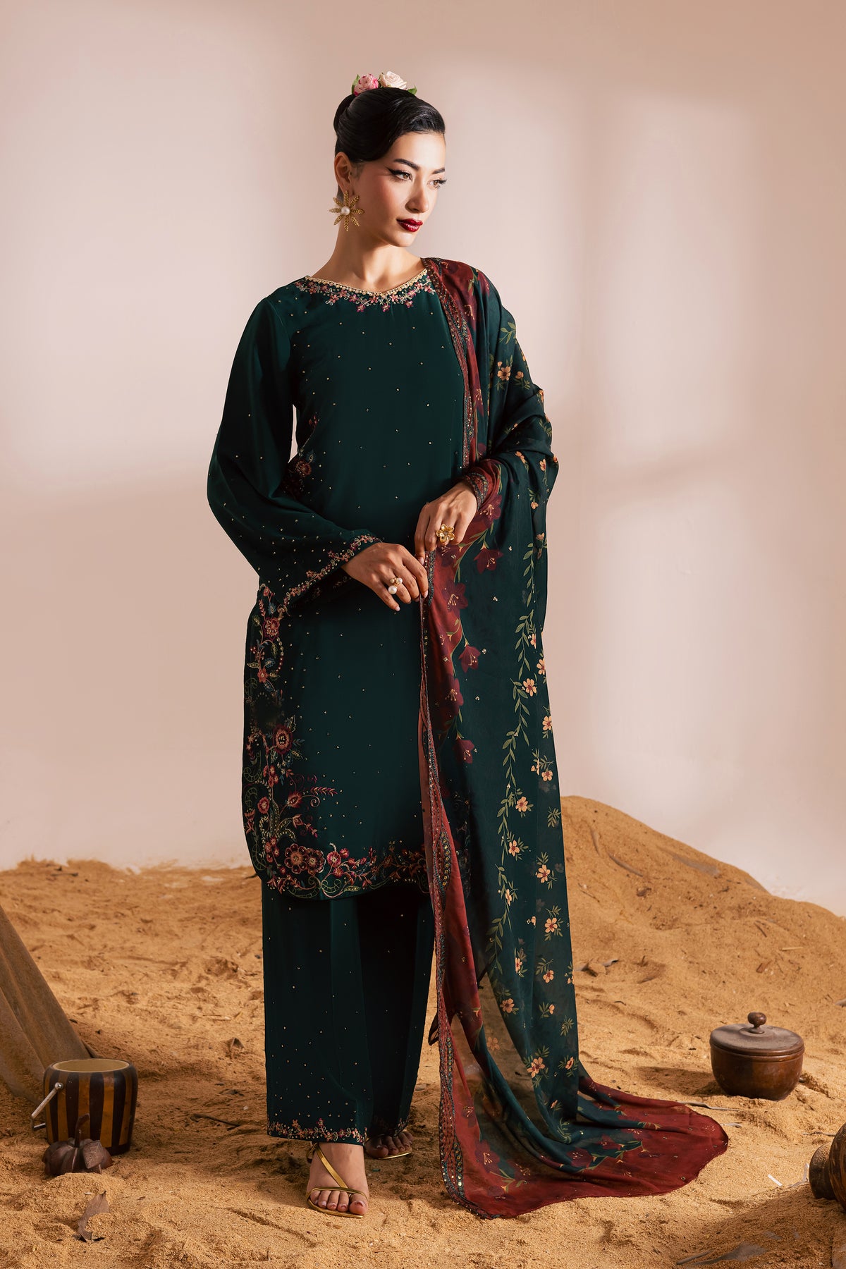 The look is completed with a printed georgette chiffon dupatta, finished with borders on two sides for a polished yet contemporary appeal.