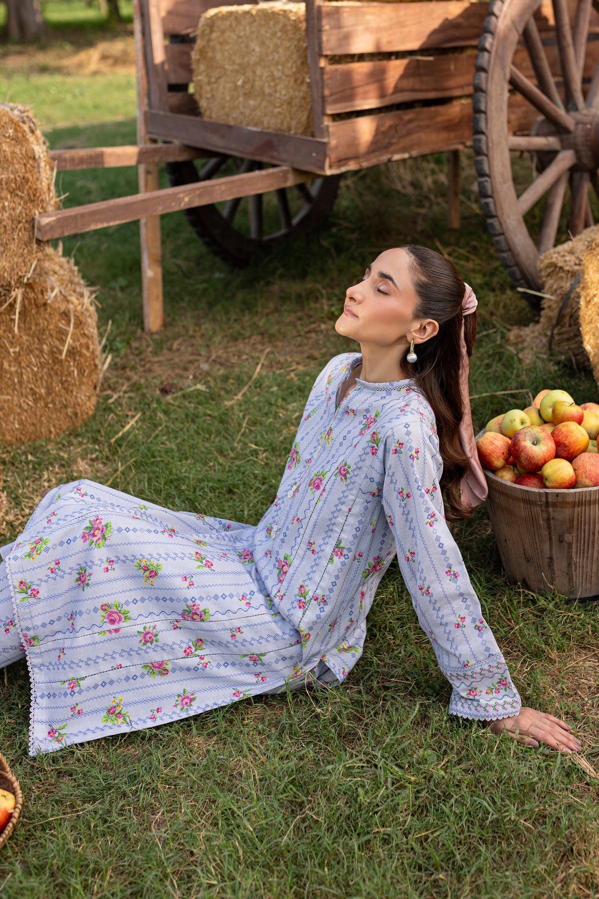 Crafted in a soft sky blue, this khaddar outfit brings a fresh airy feel to your wardrobe. The shirt’s unique five panel design is highlighted by a button collage at the neckline, adding playful detail to the look.