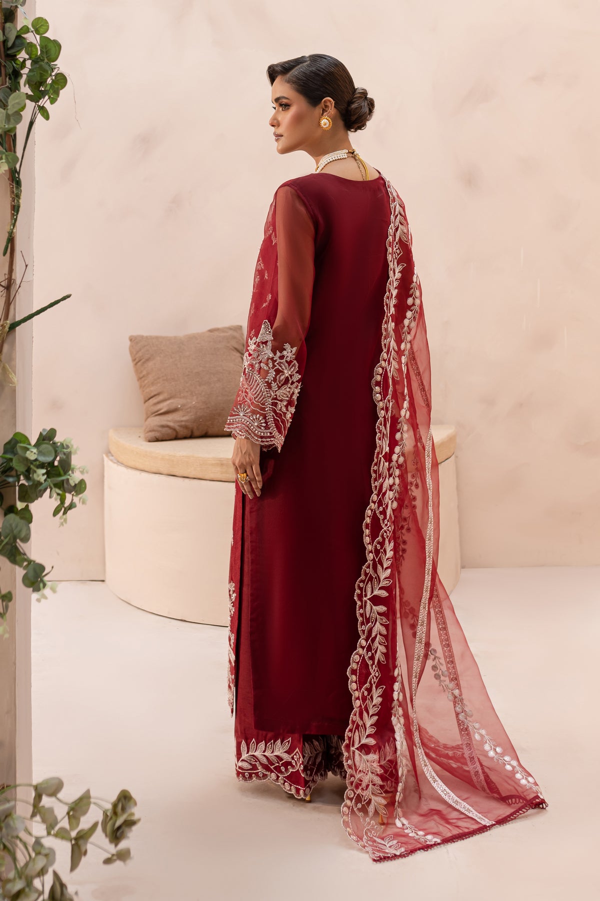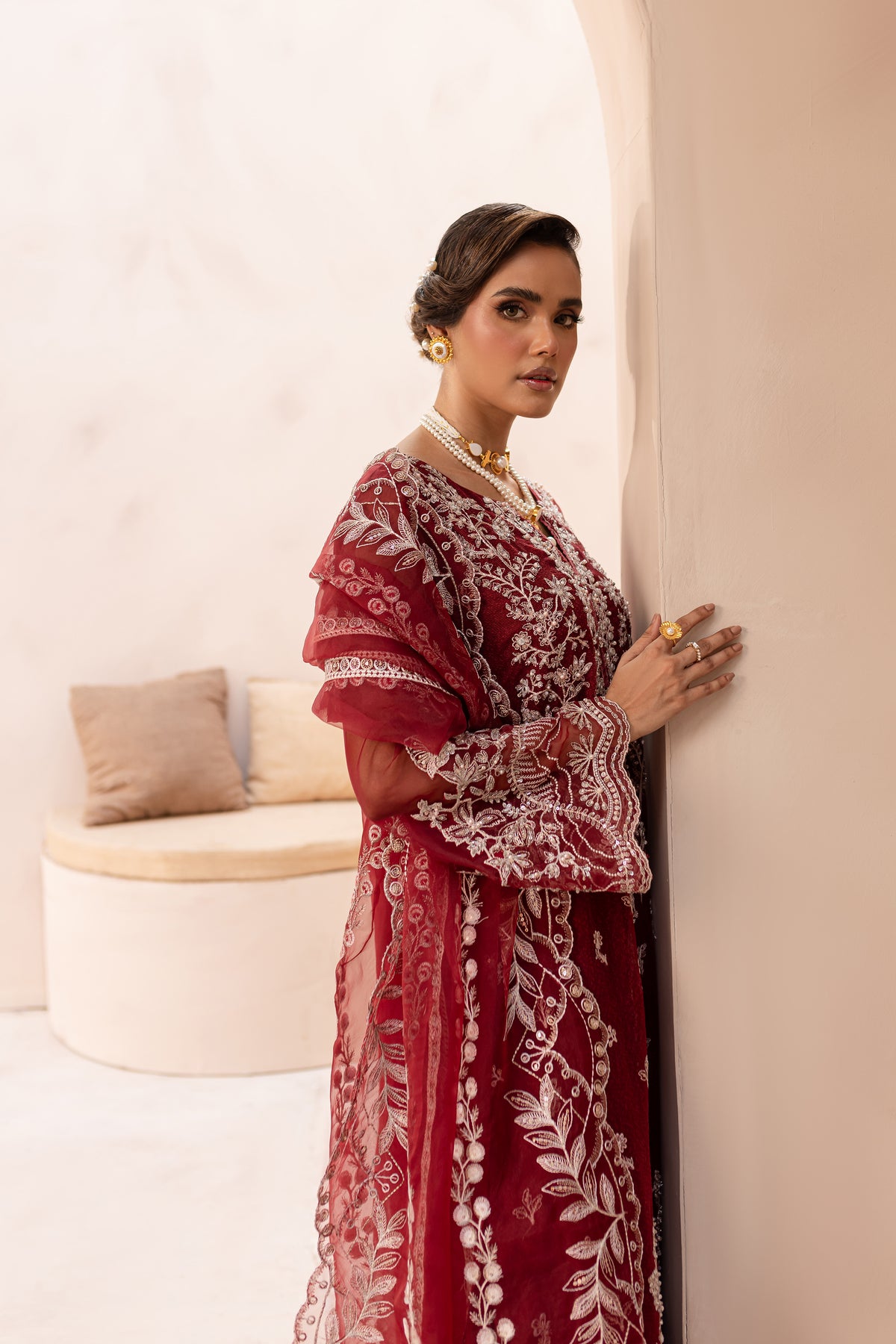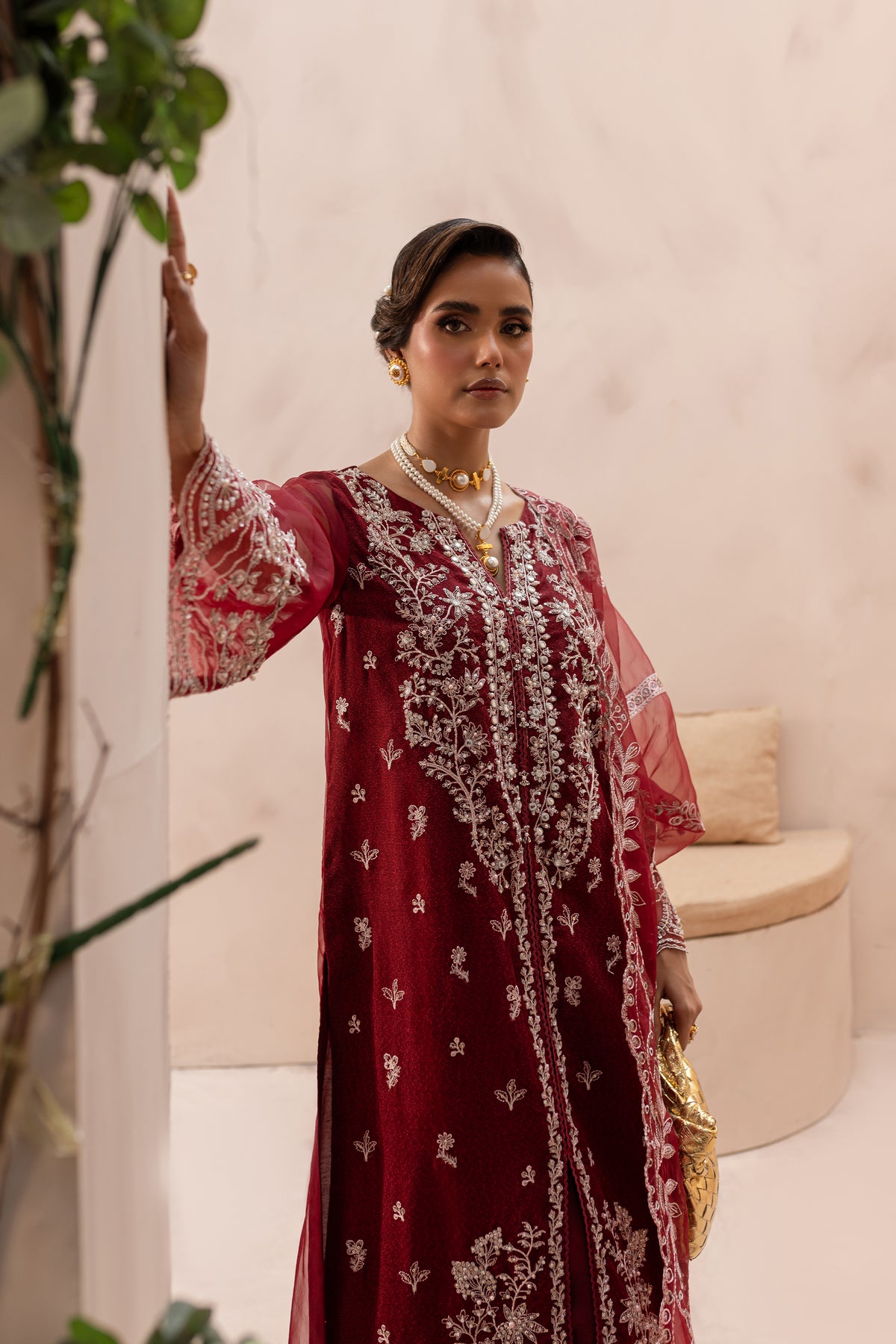 The dupatta, with organza jacquard borders and a plain organza center, features detailed embroidery in the middle, rounding out this elegant look with a perfect balance of structure and flow.