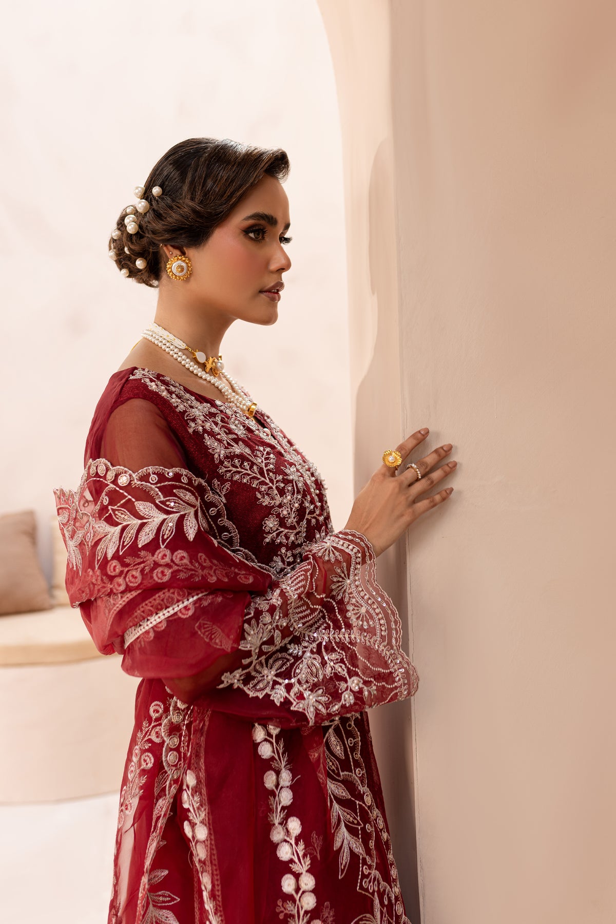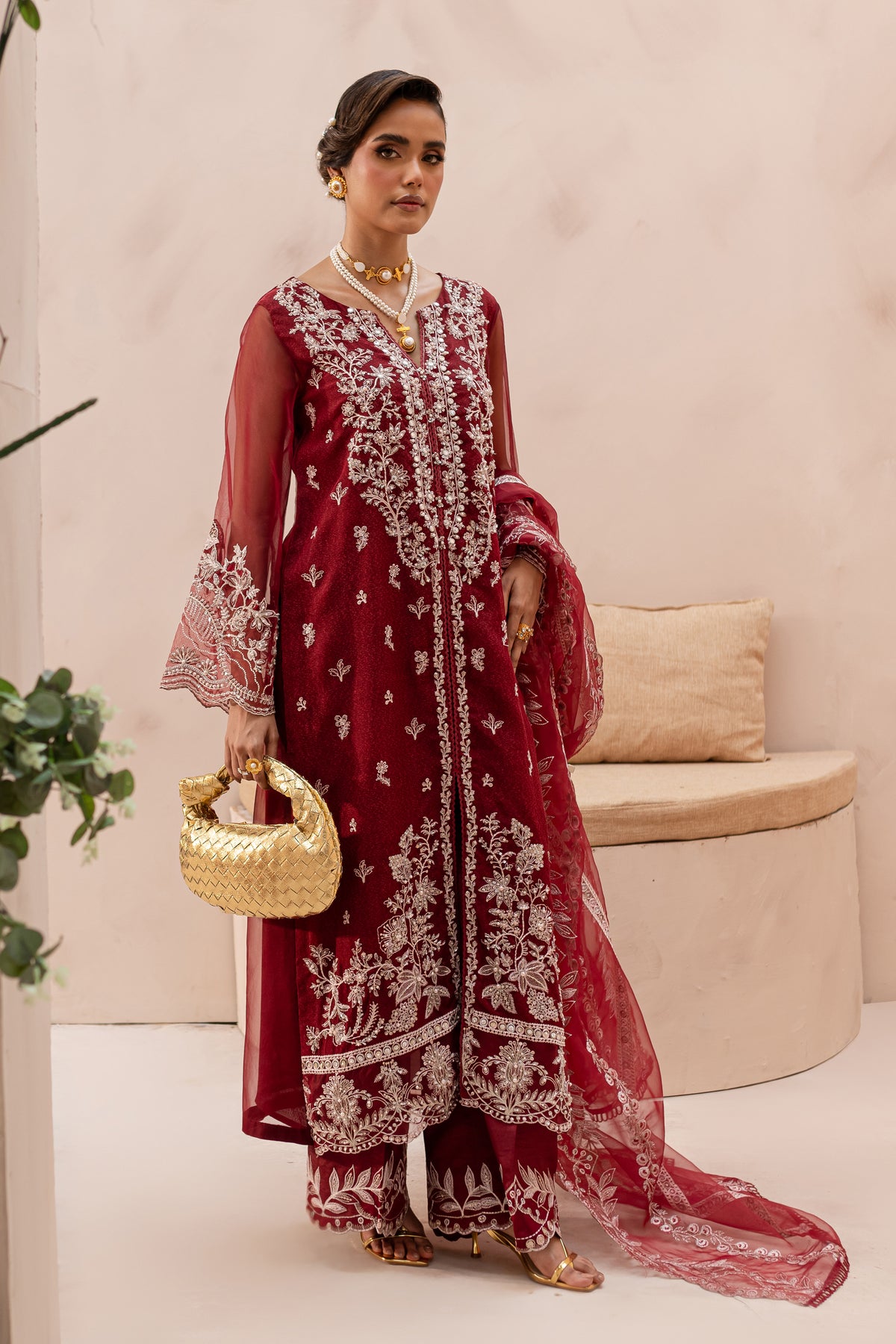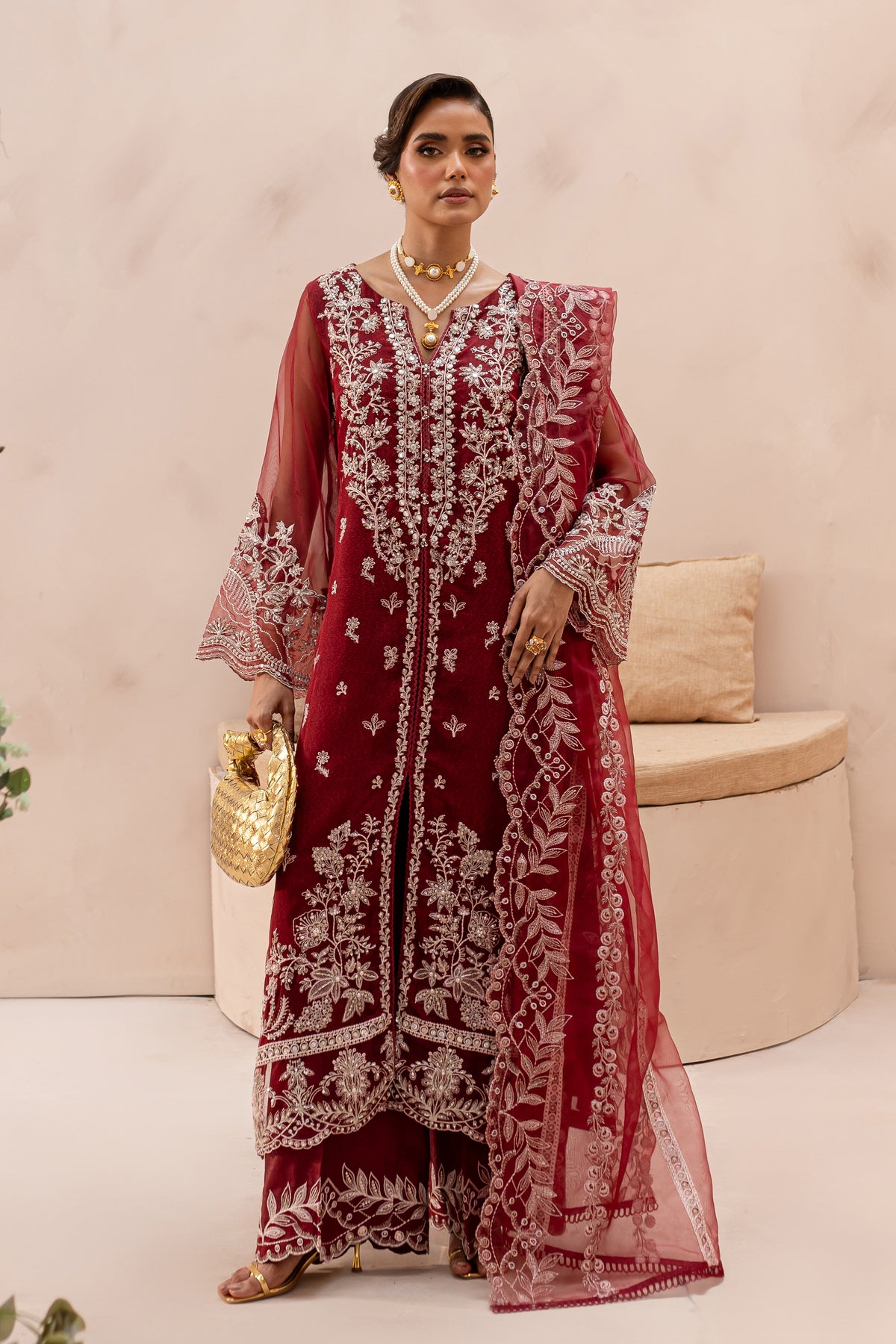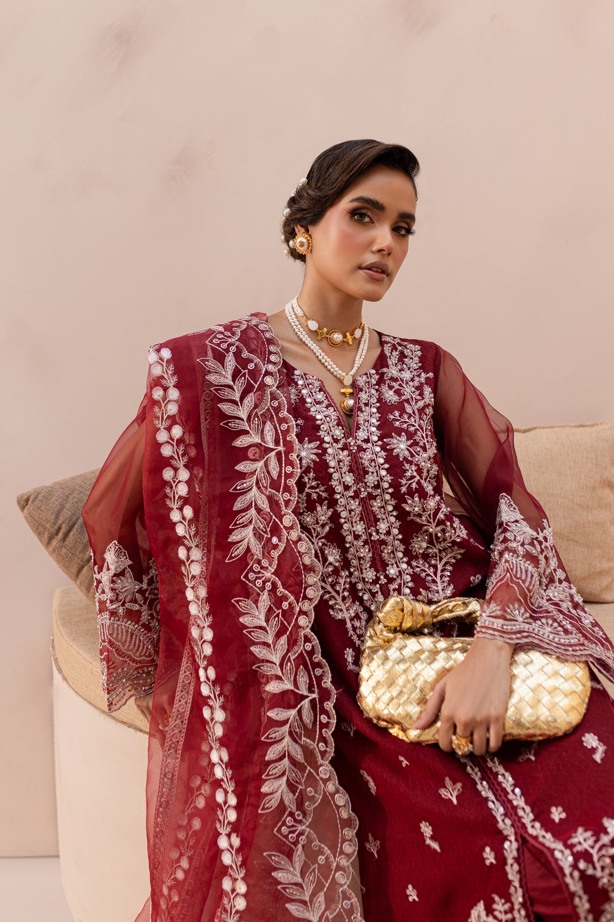 The dupatta, with organza jacquard borders and a plain organza center, features detailed embroidery in the middle, rounding out this elegant look with a perfect balance of structure and flow.