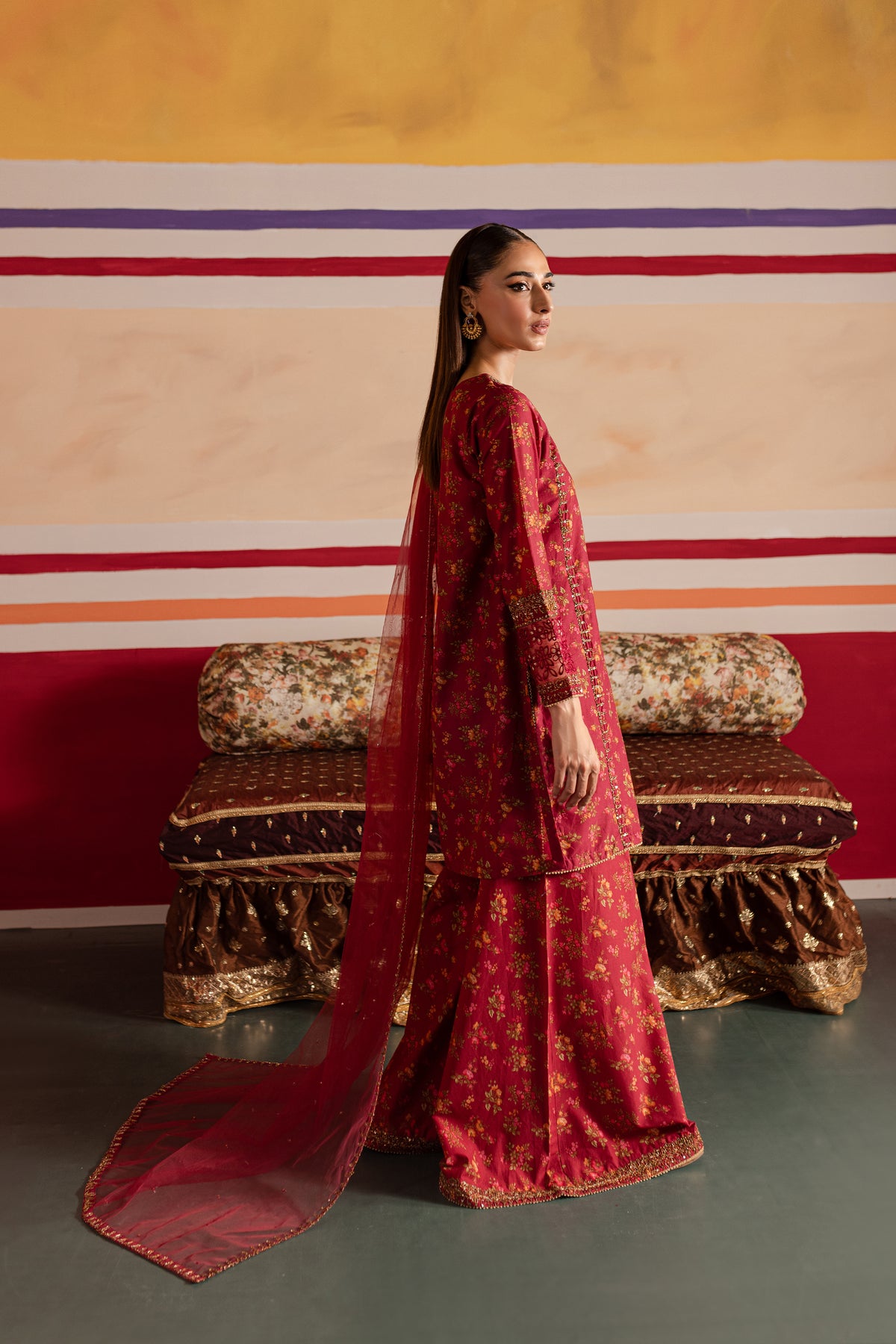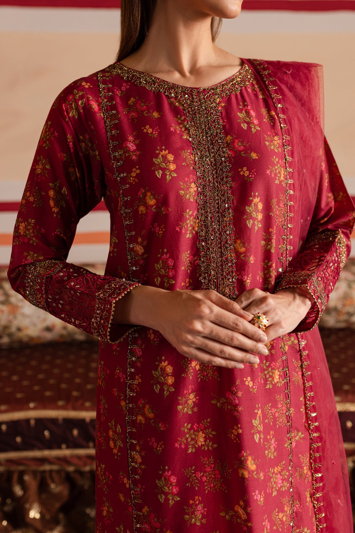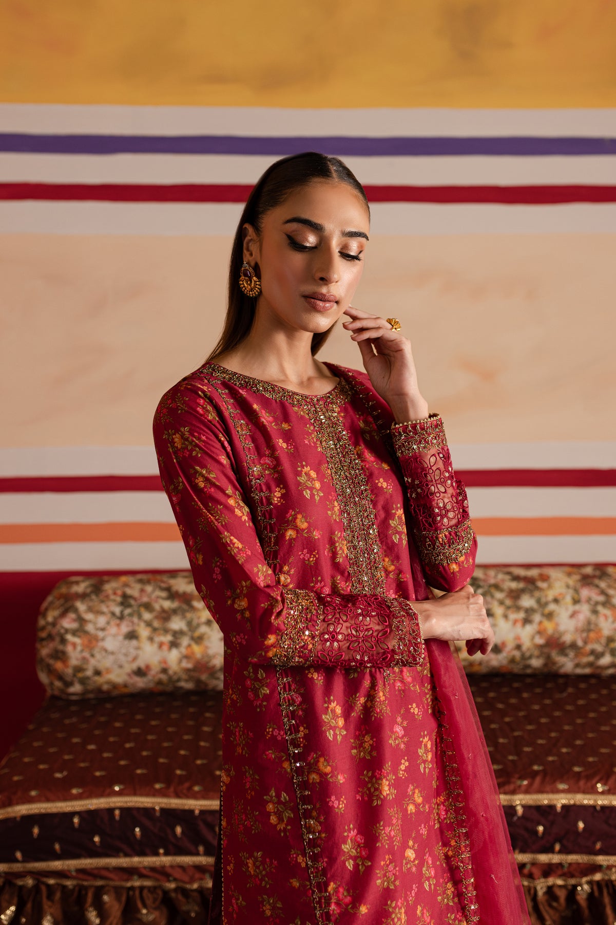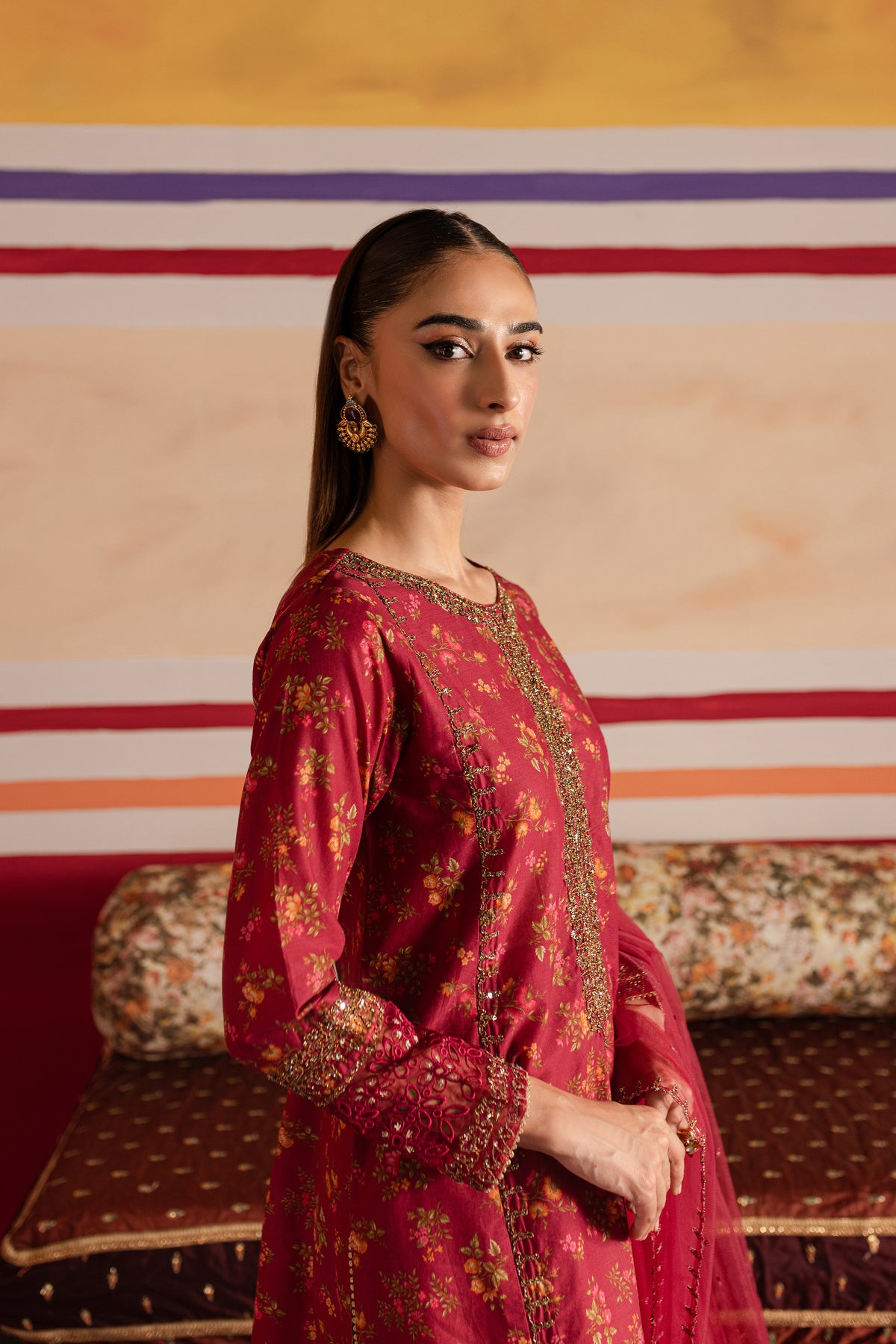 Infuse your wardrobe with a splash of vibrant elegance in our captivating pink ensemble made from the finest quality Pima lawn. This printed shirt is a visual delight showcasing lively patterns adorned with dori embroidery at neckline and along the panel joints. The embroidered hem on the sleeves add an extra touch of sophistication to the shirt. Lace is added at shirt hem and sleeves for finishing.