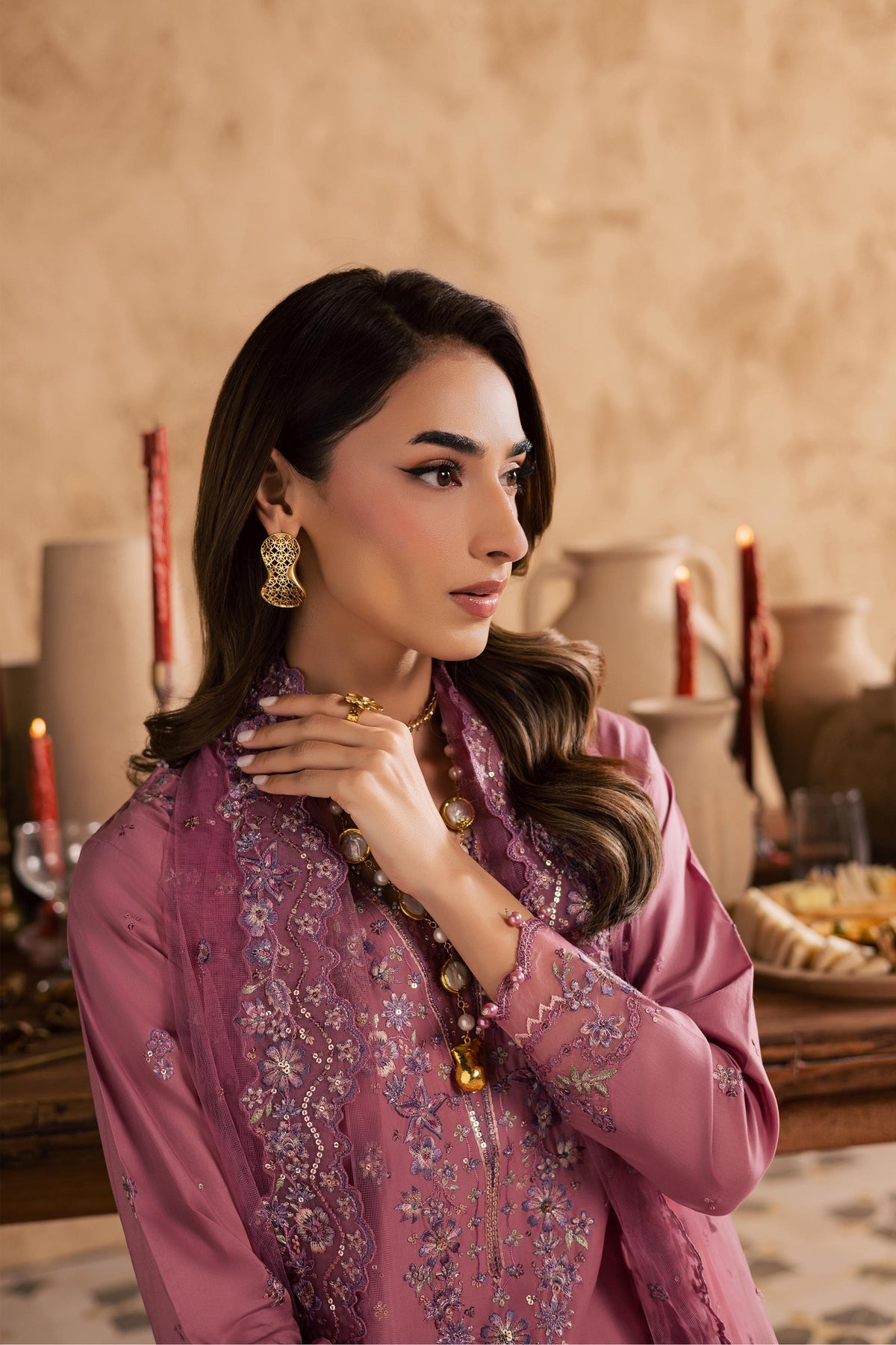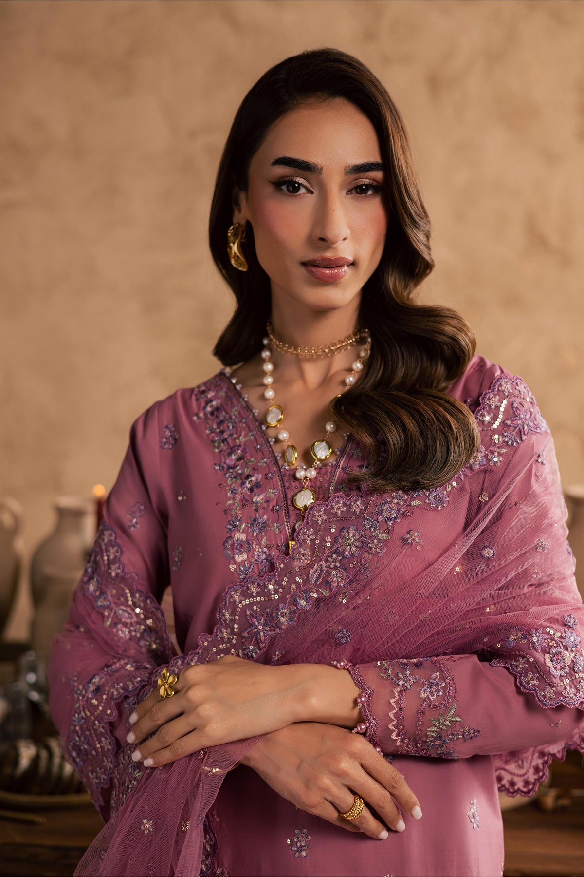 An embroidered organza dupatta with scalloped borders on all four sides completes the ensemble, adding elegance and a soft festive finish.
