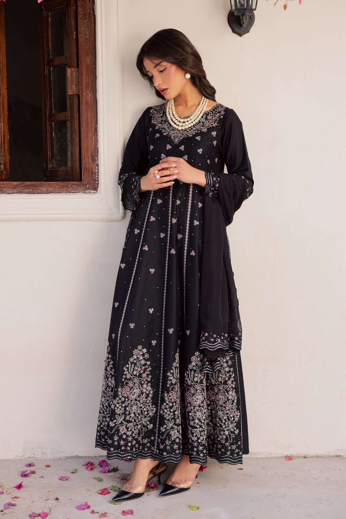 A crinkle dupatta completes the ensemble, finished with a scalloped edge that ties in seamlessly with the frock detailing.