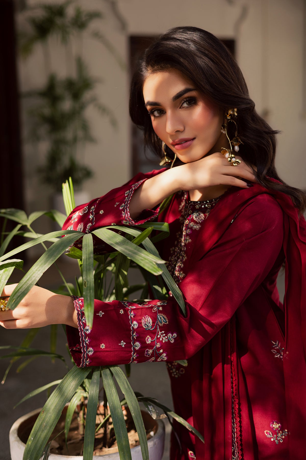 This khaddar long shirt features an embroidered neckline with a centered embroidered spread that adds subtle elegance to the design. The full sleeves are finished with embroidered cuffs, bringing definition and structure to the overall silhouette.