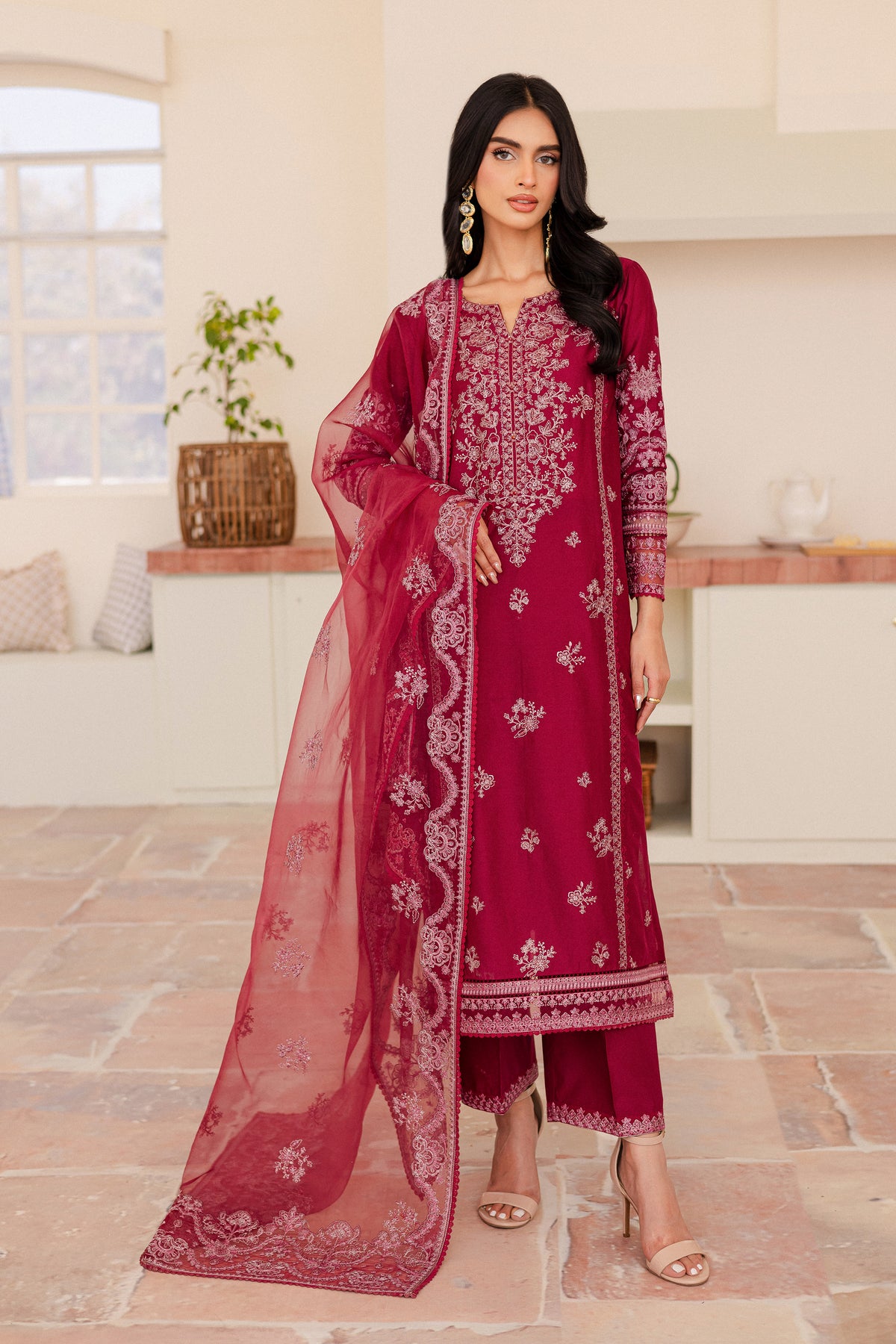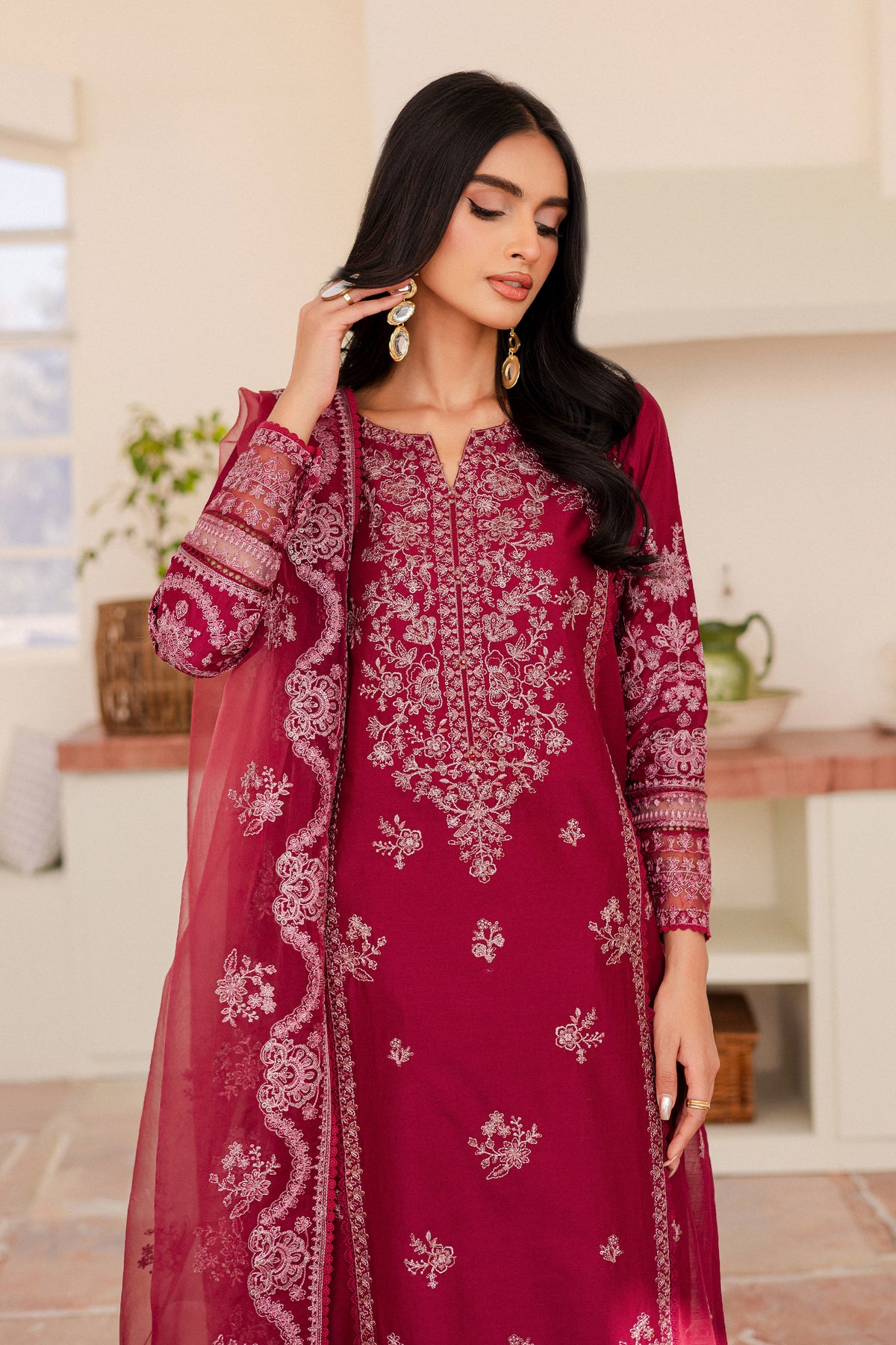 This A-line paneled pima lawn shirt is a true statement piece, featuring heavy embroidery with a spread motif across the front, while the side panels offer a minimal spread for a clean and elegant finish. The hem is meticulously crafted with organza borders and delicate crochet lace, adding a refined touch to the overall design. The intricate detailing of the embroidery ensures a perfect blend of modern style and traditional elegance.