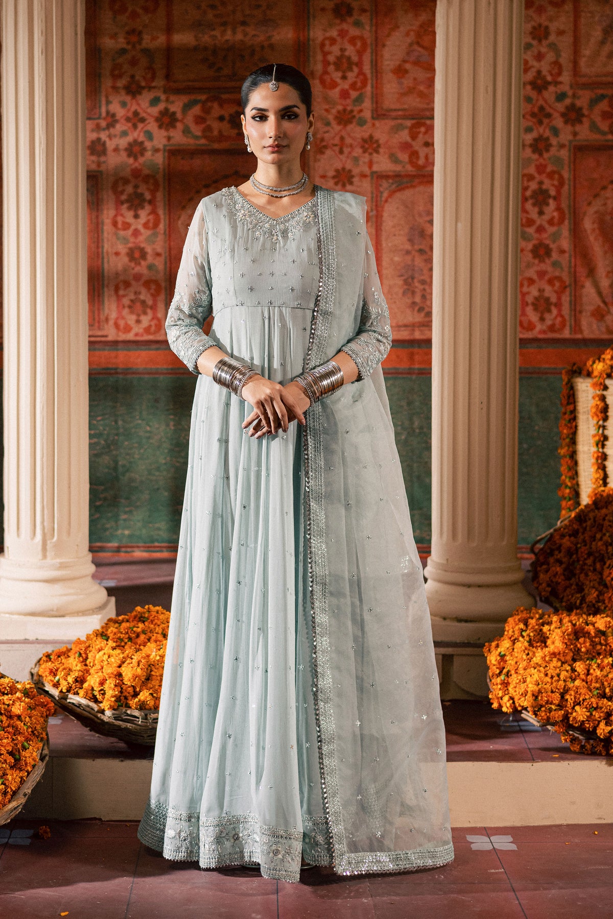 Frozen  3Pc - Chiffon Wedding Frock BATIKLuxePRET2025  BATIK   S / Ice Blue / Chiffon & Raw Silk-M / Ice Blue / Chiffon & Raw Silk-L / Ice Blue / Chiffon & Raw Silk