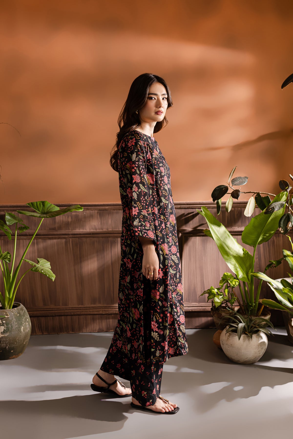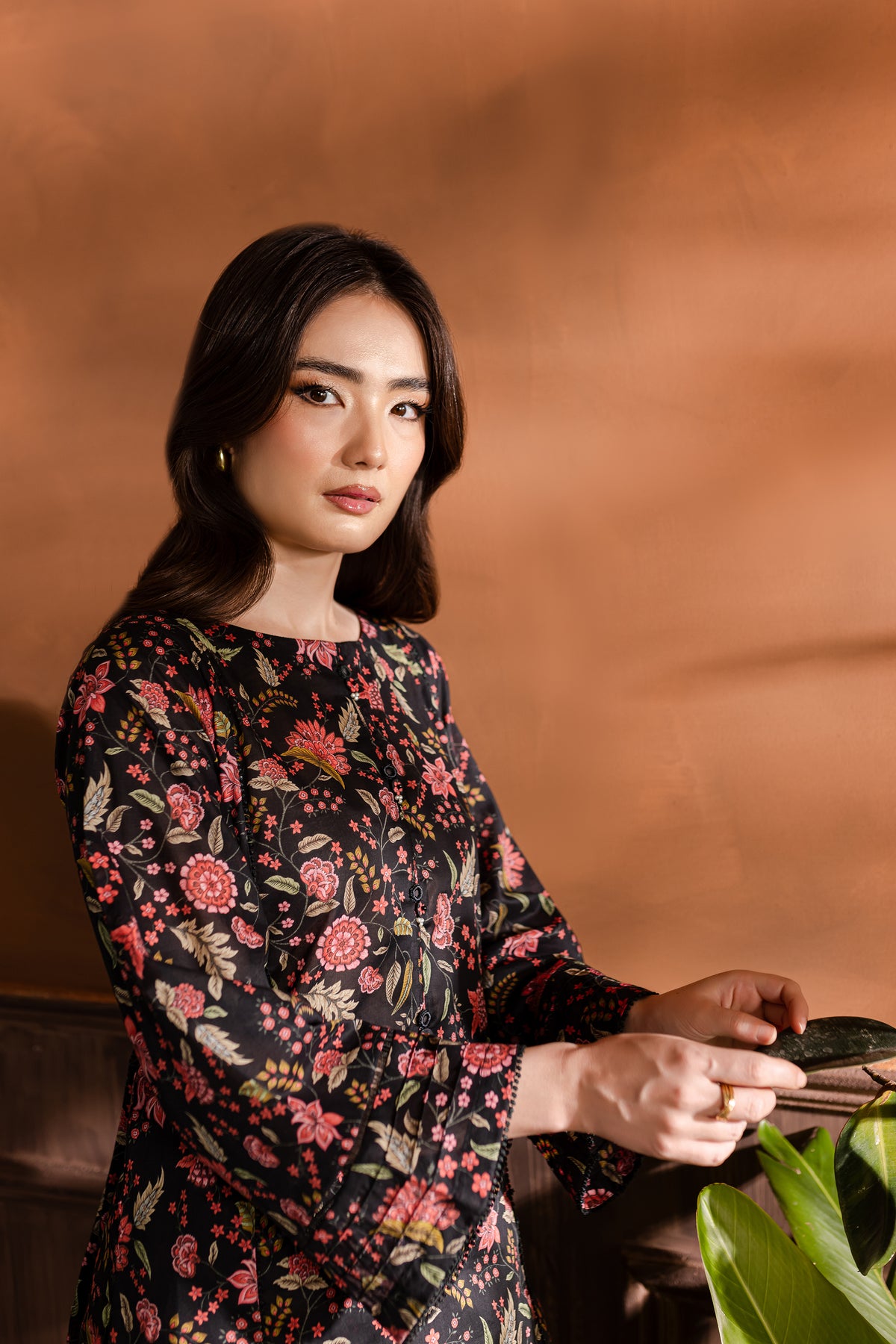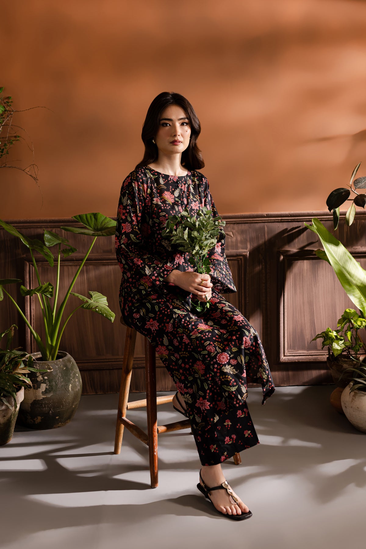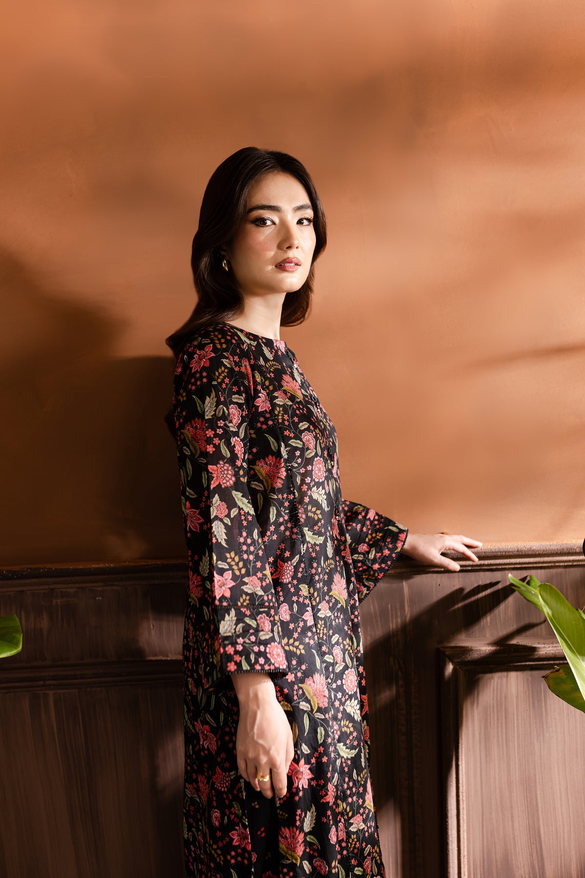 Step into the realm of refined elegance with our finest quality Pima lawn in the classic shades of black. Skillfully printed paneled shirt features beautiful embellishments at neckline – outfit is enhanced pin tucks. Striking details withhold lace finishing at the hem of sleeves.