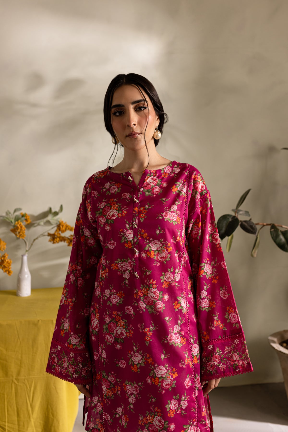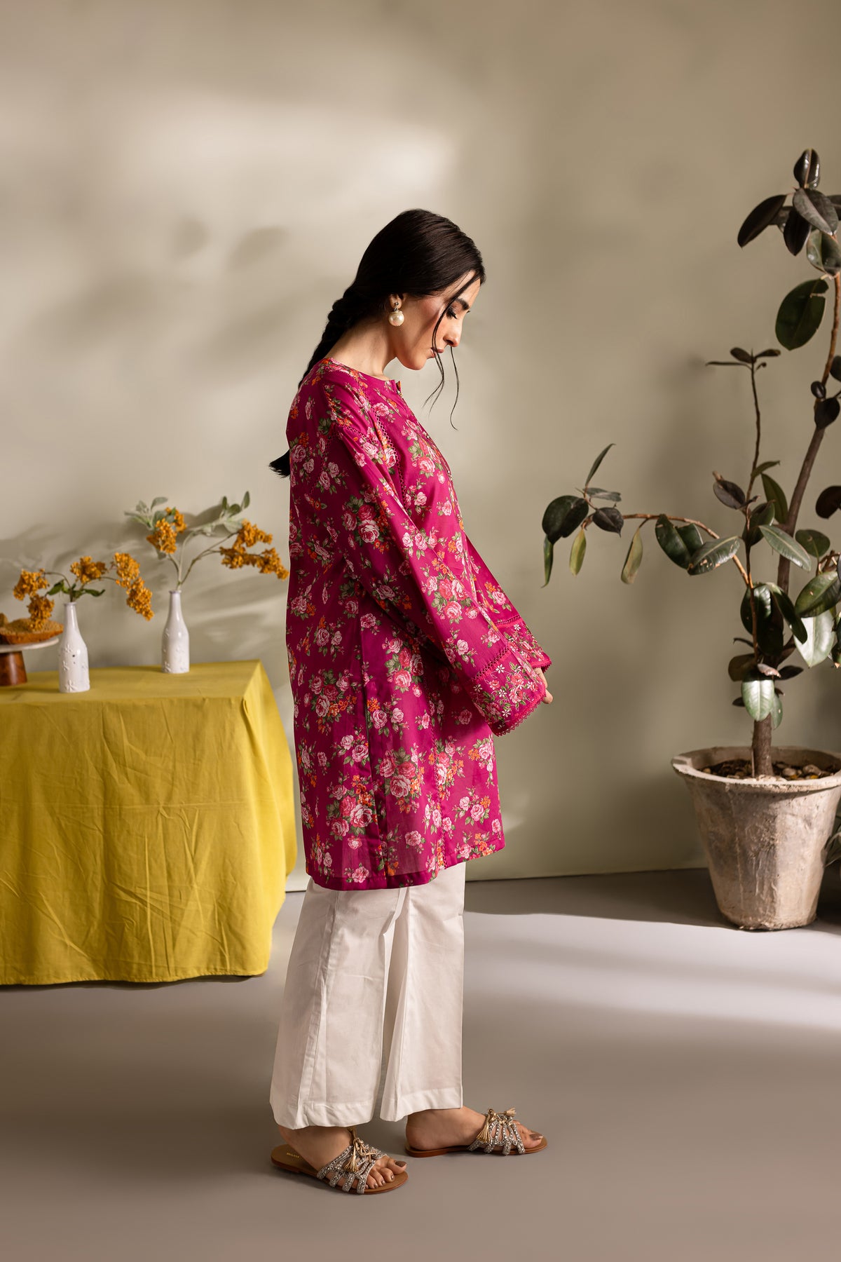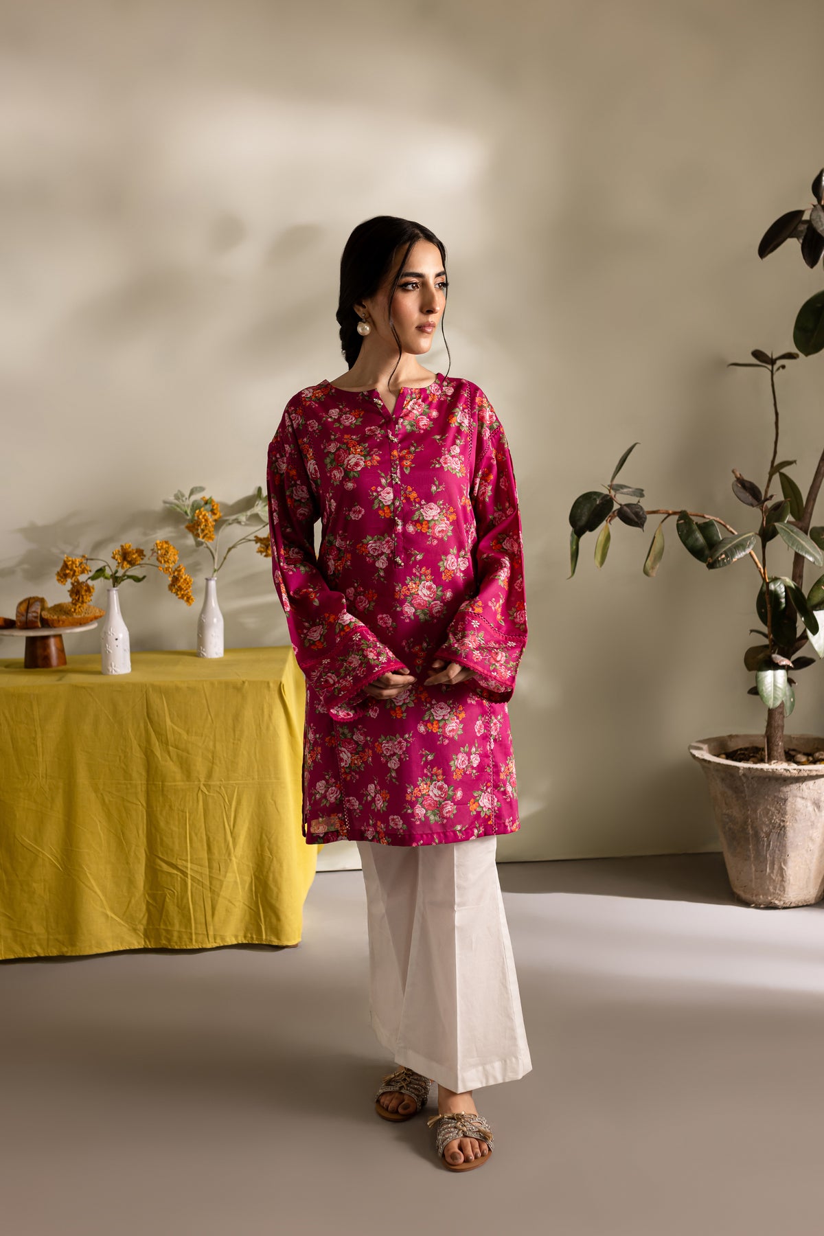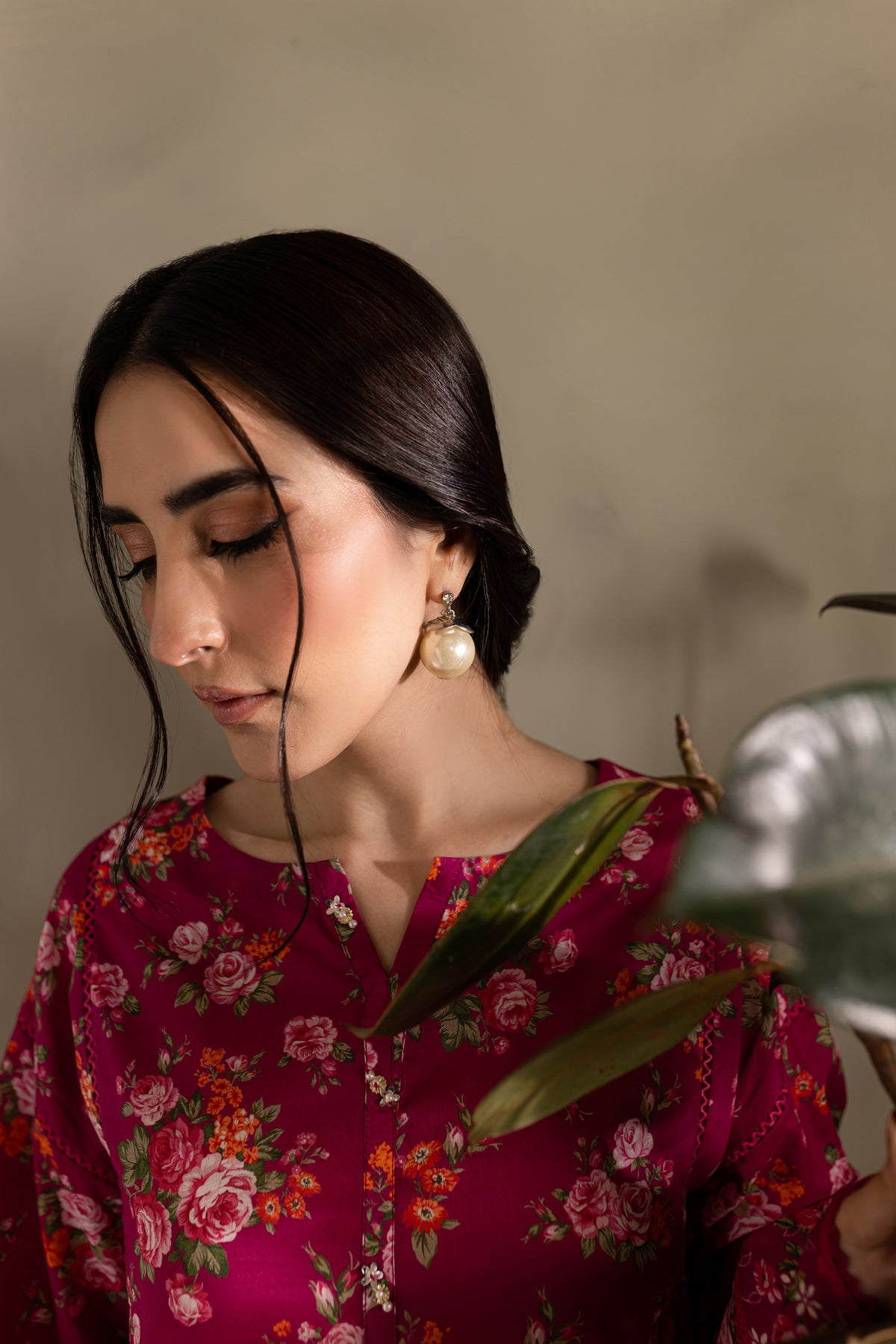 Elevate your style with this stunning pink Pima lawn ensemble. The shirt features a printed front with intricate laces at the panels and a delicate neckline collage, adding a touch of elegance and sophistication. The sleeves boast a lovely printed border at the hem, completing the charming design.