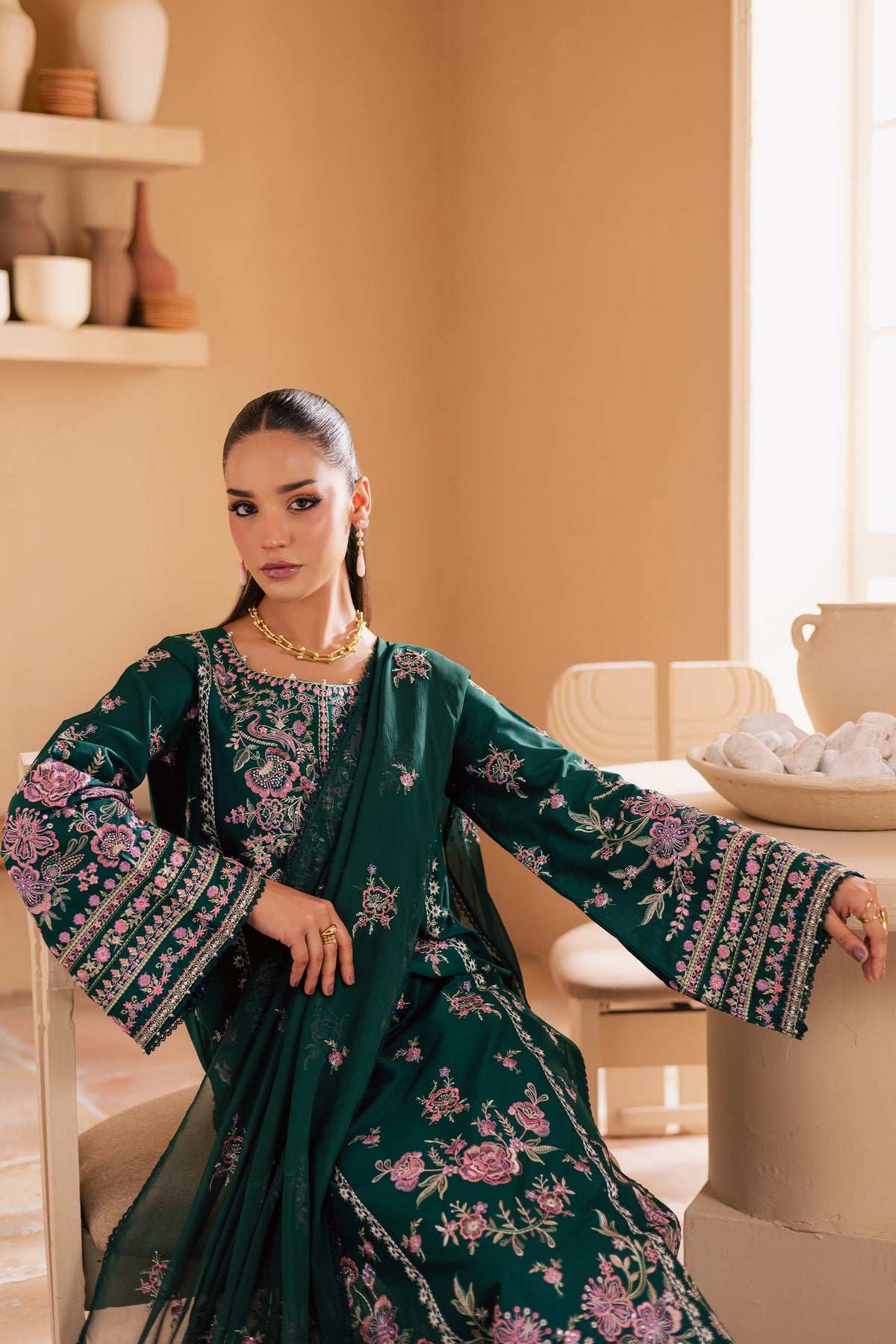 The outfit is completed with a beautifully embroidered chiffon dupatta, finished with lace edging that lends a soft, graceful drape to this refined ensemble.