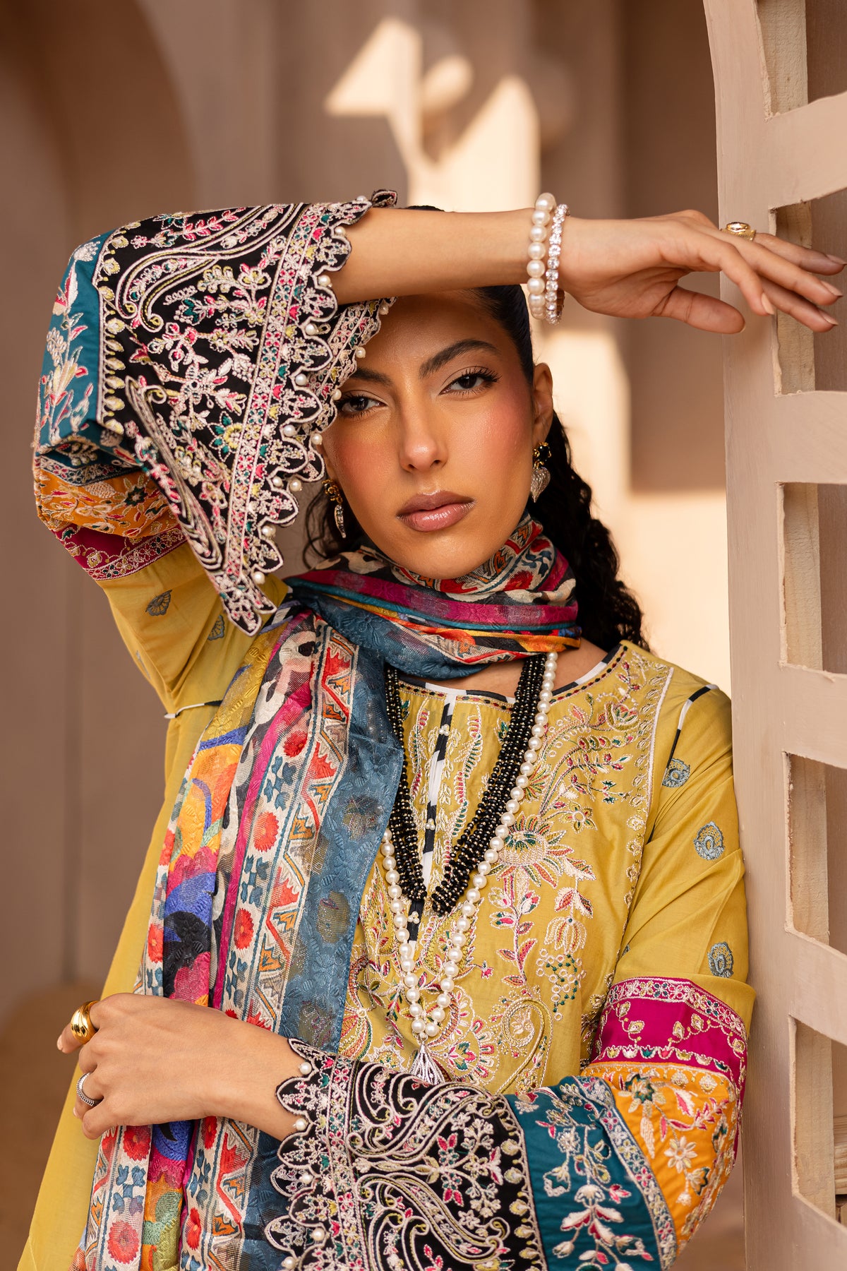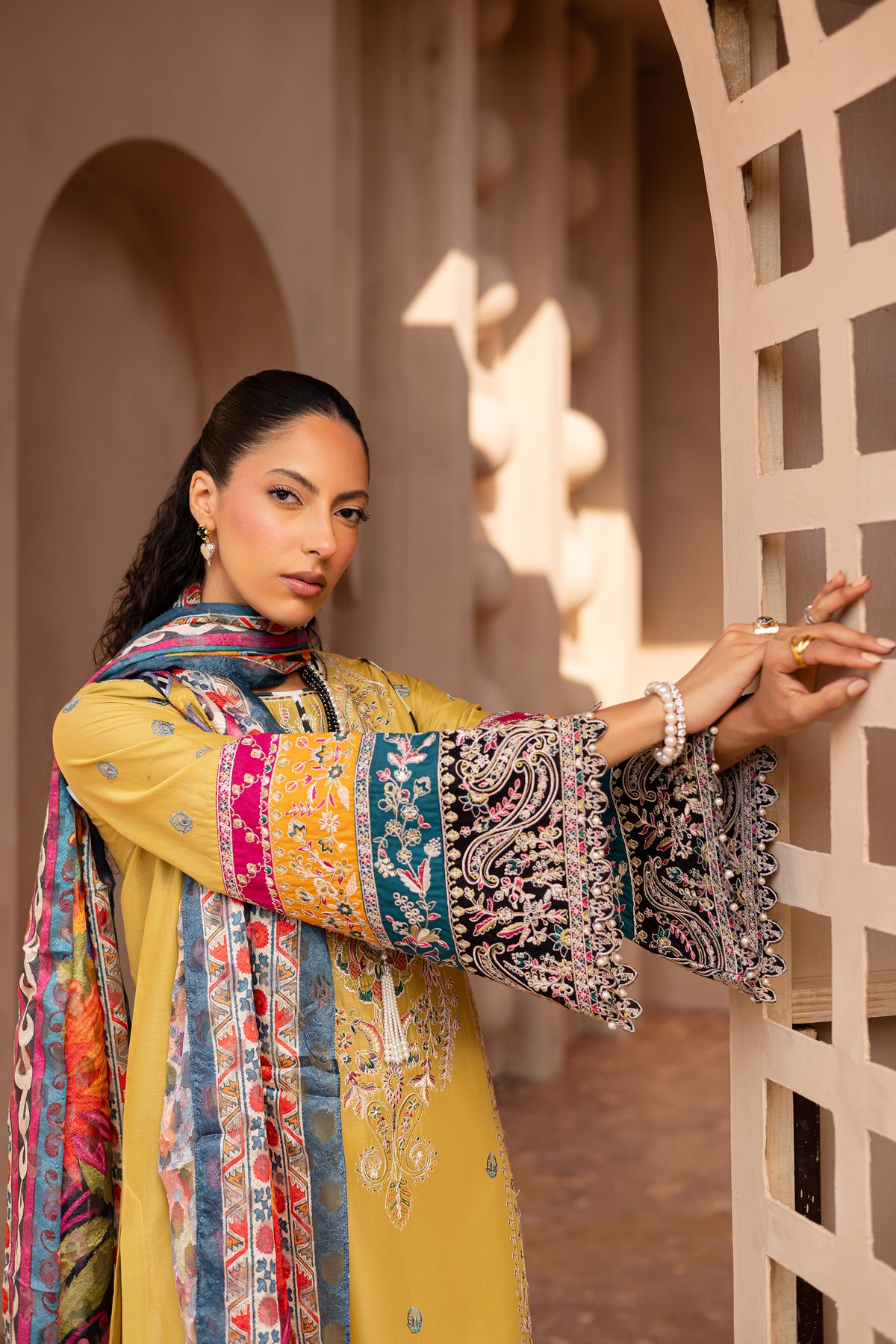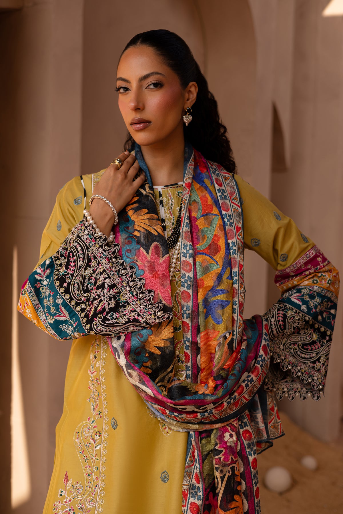 Paired with a beautifully designed Brochia jacquard digital-printed dupatta that adds a rich, textured dimension to the look.