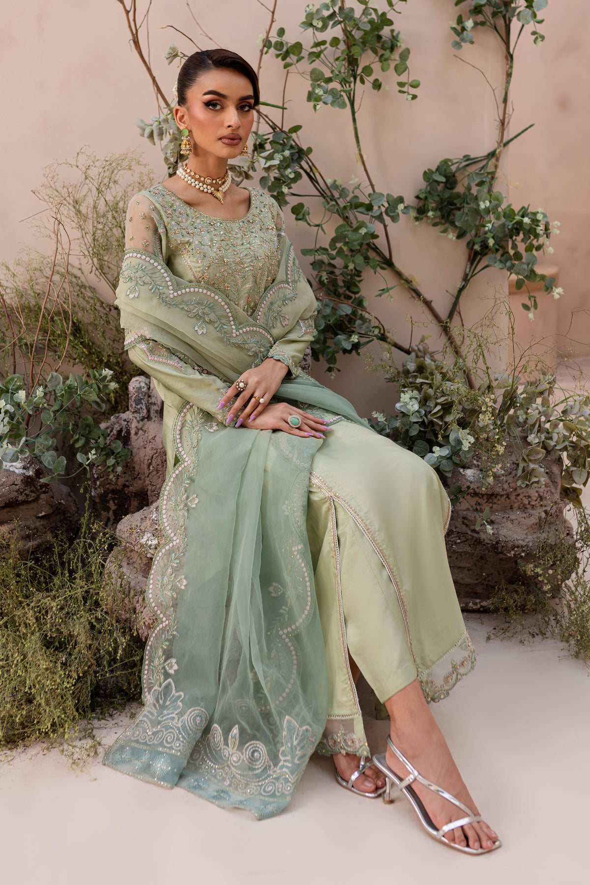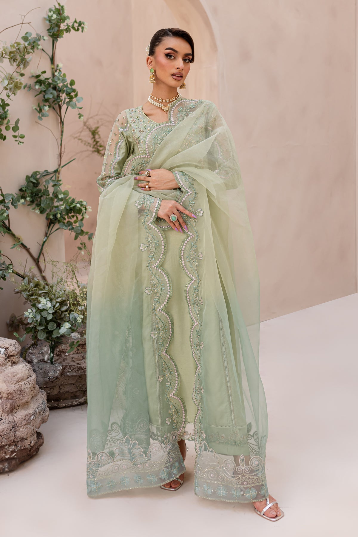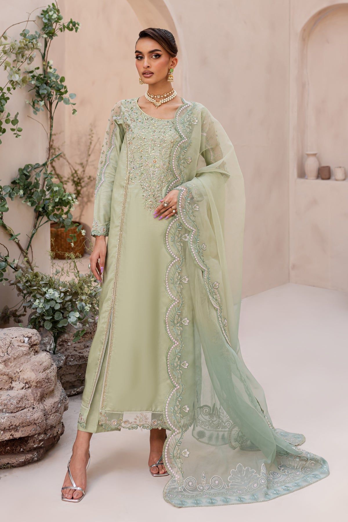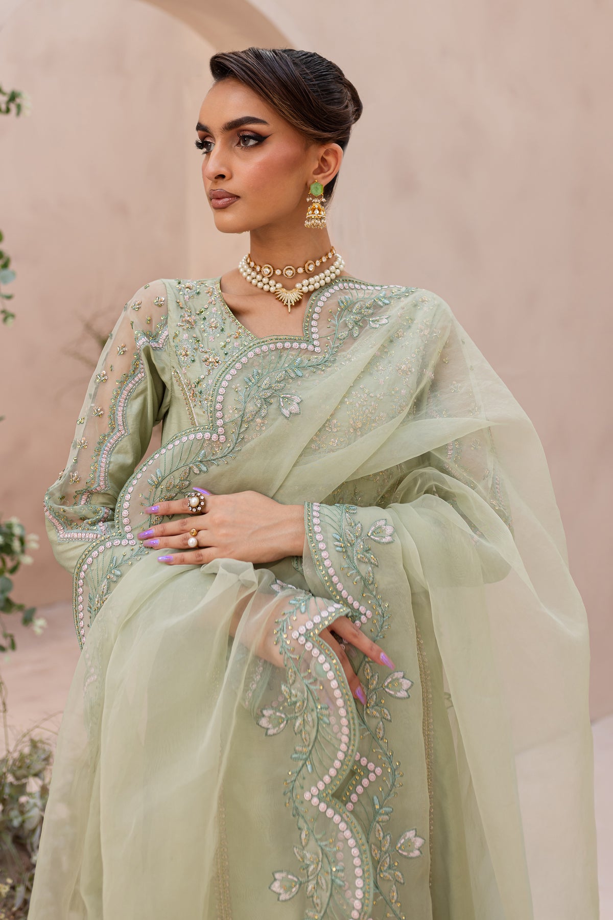 The organza dupatta enhances the elegance with its subtle embellishments.