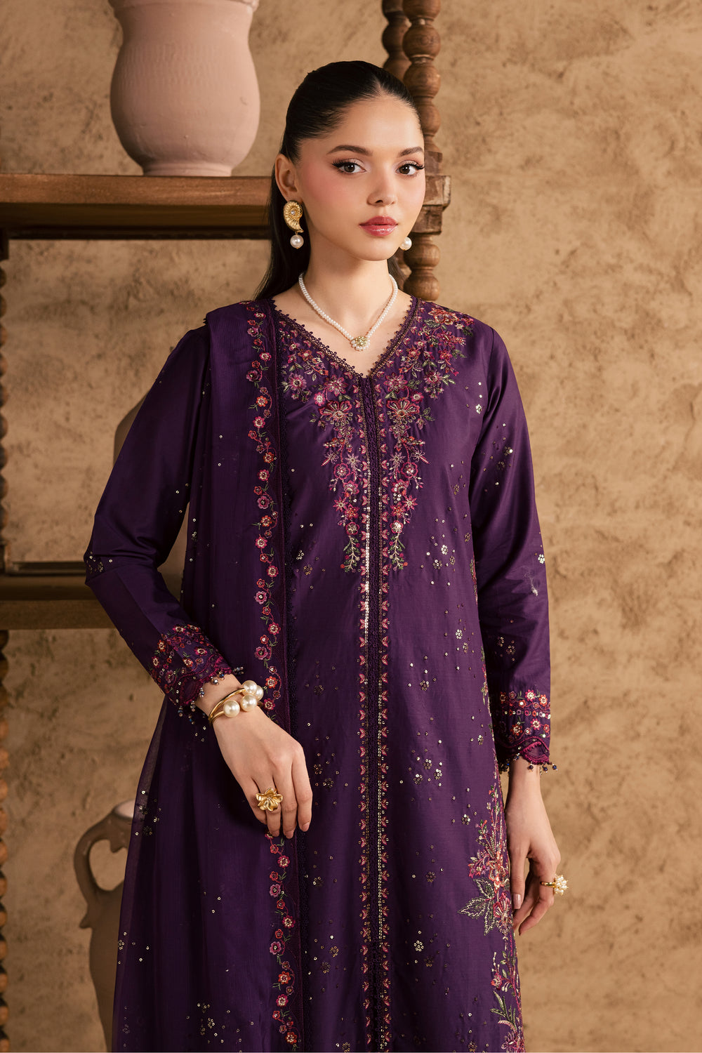 Plum Haze 3Pc - Festive Embroidered Lawn