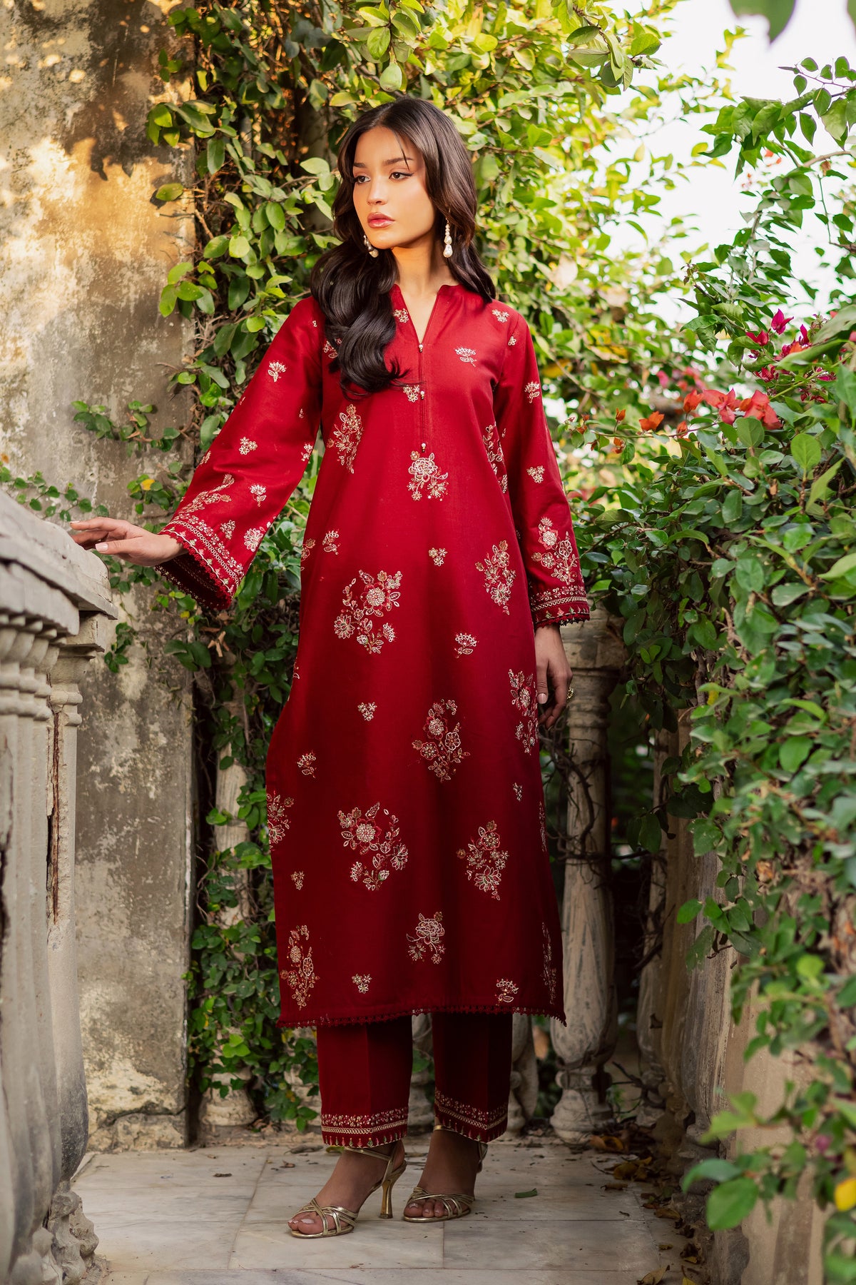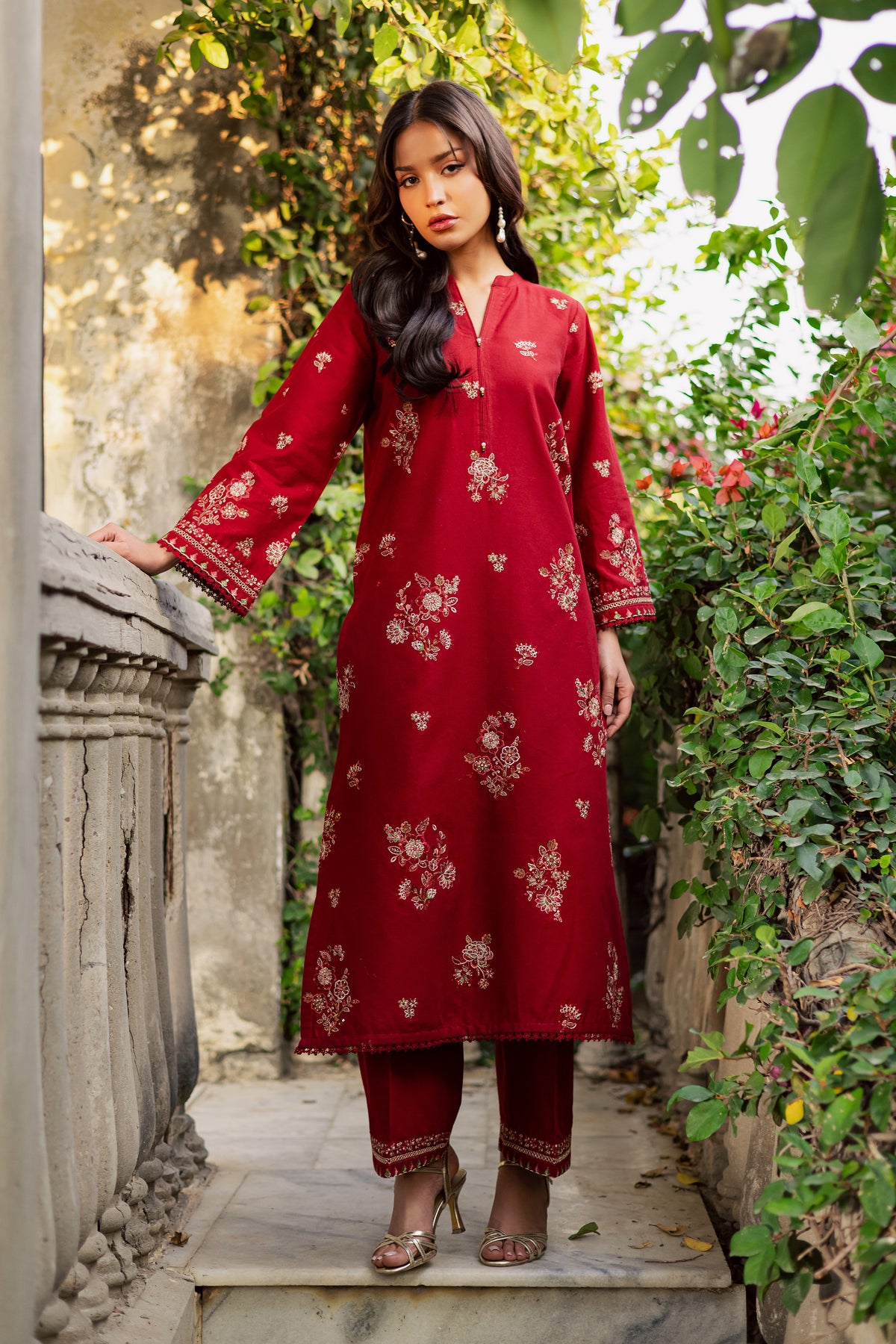 This all over embroidered khaddar shirt features slight embellishment on the neckline, offering sophistication and subtle charm.