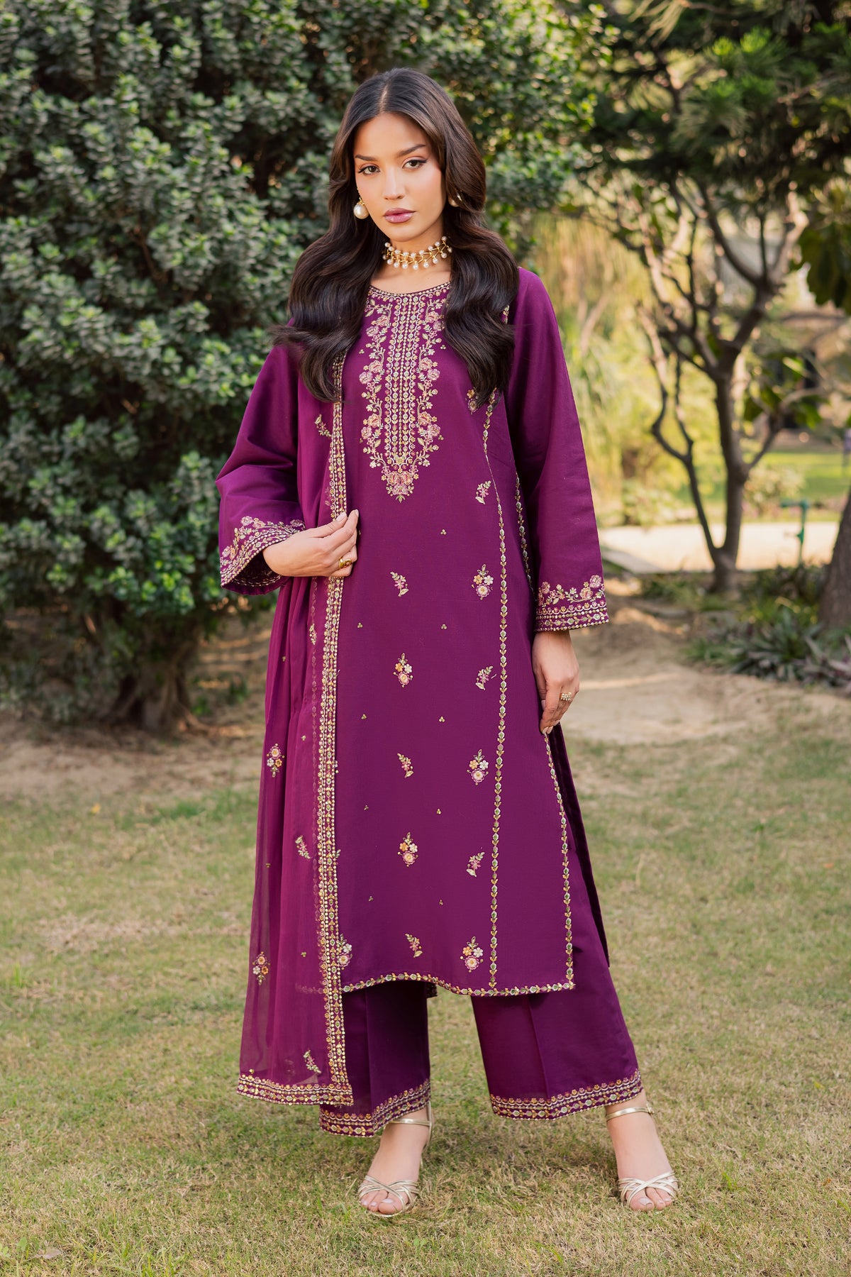 Ruby Rosa 3Pc - Embroidered Khaddar Dress BATIK WINTER PRET 2025  BATIK   XS / Dark Purple / Khaddar-S / Dark Purple / Khaddar-M / Dark Purple / Khaddar-L / Dark Purple / Khaddar-XL / Dark Purple / Khaddar