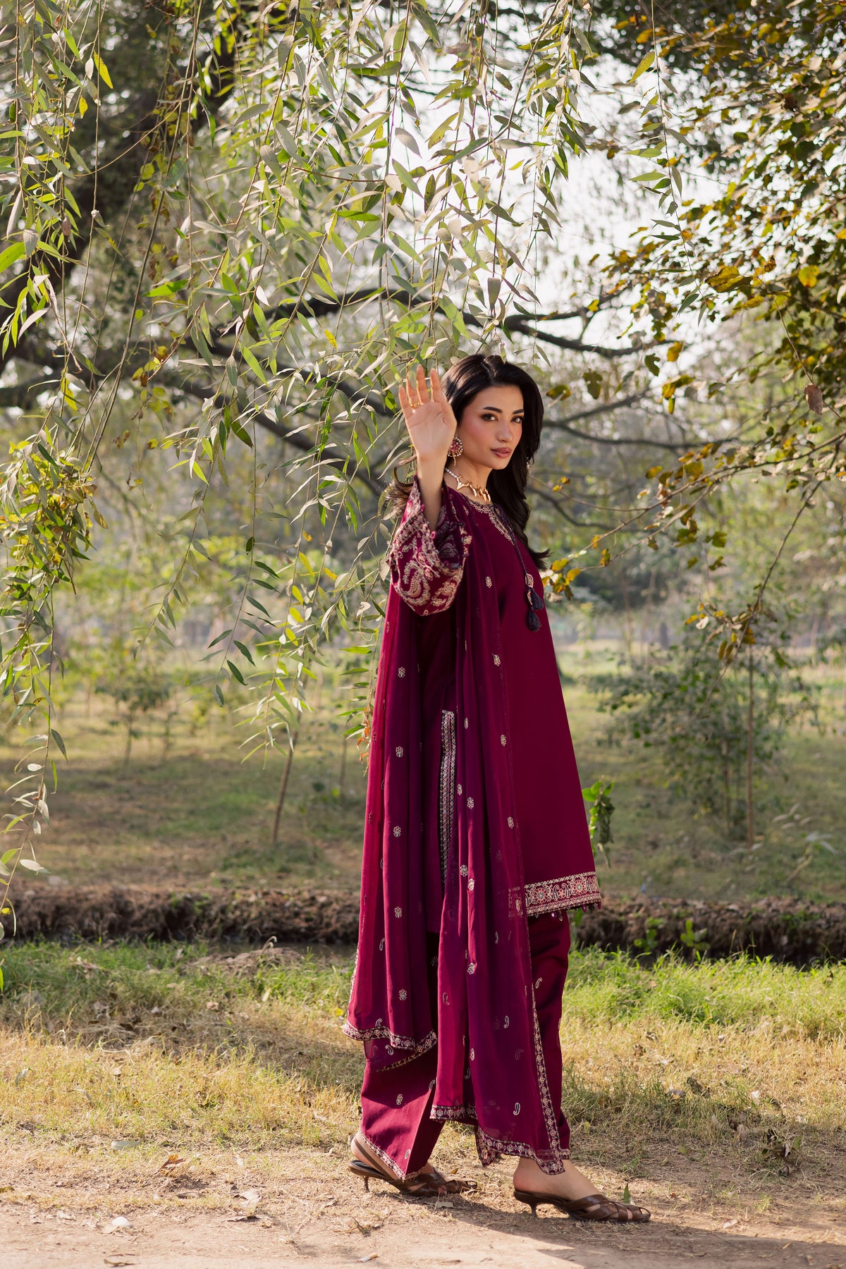 Sheharbano 3Pc - Embroidered Khaddar Dress BATIK WINTER PRET 2025  BATIK   XS / Maroon / Khaddar-S / Maroon / Khaddar-M / Maroon / Khaddar-L / Maroon / Khaddar-XL / Maroon / Khaddar