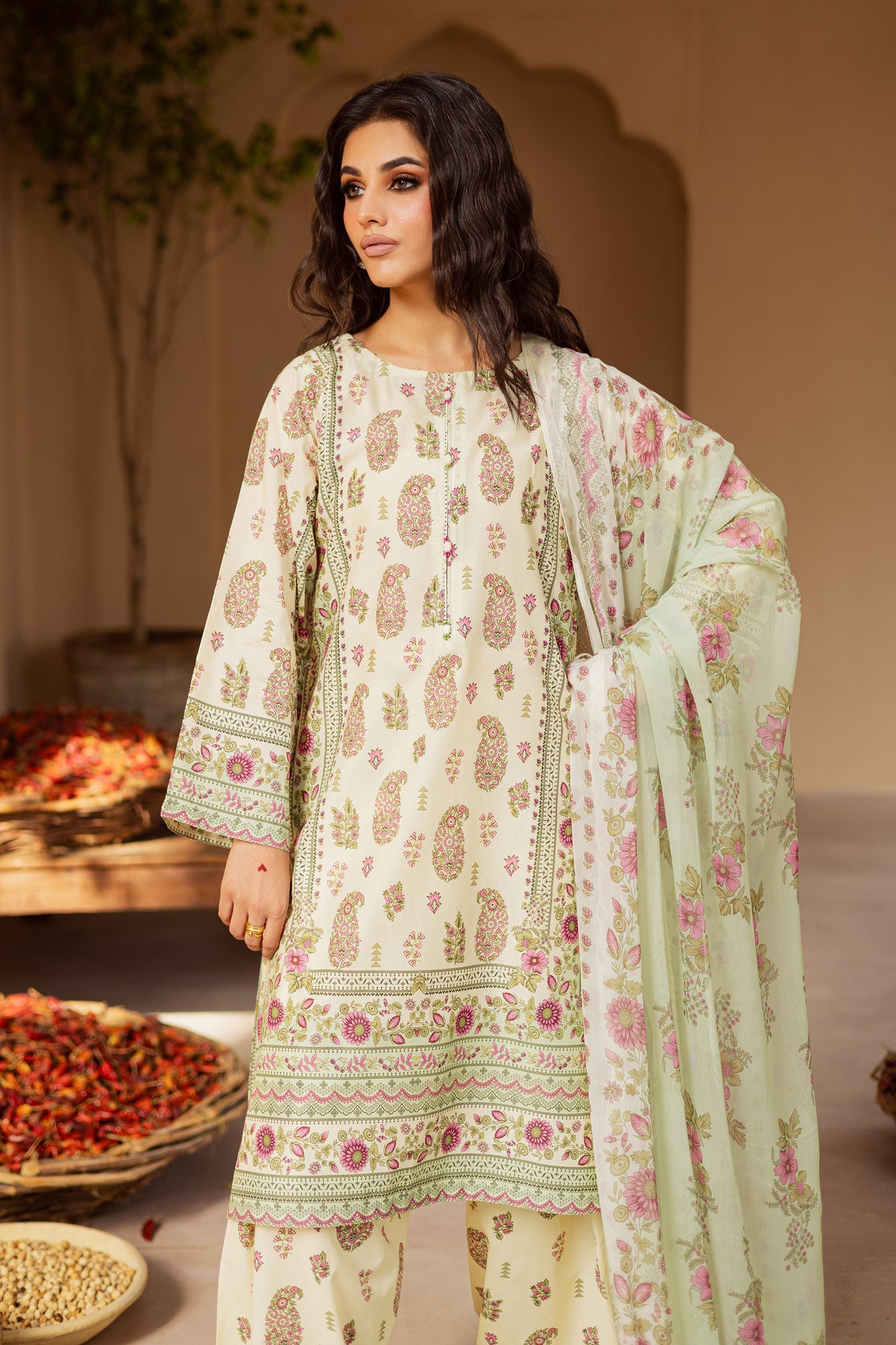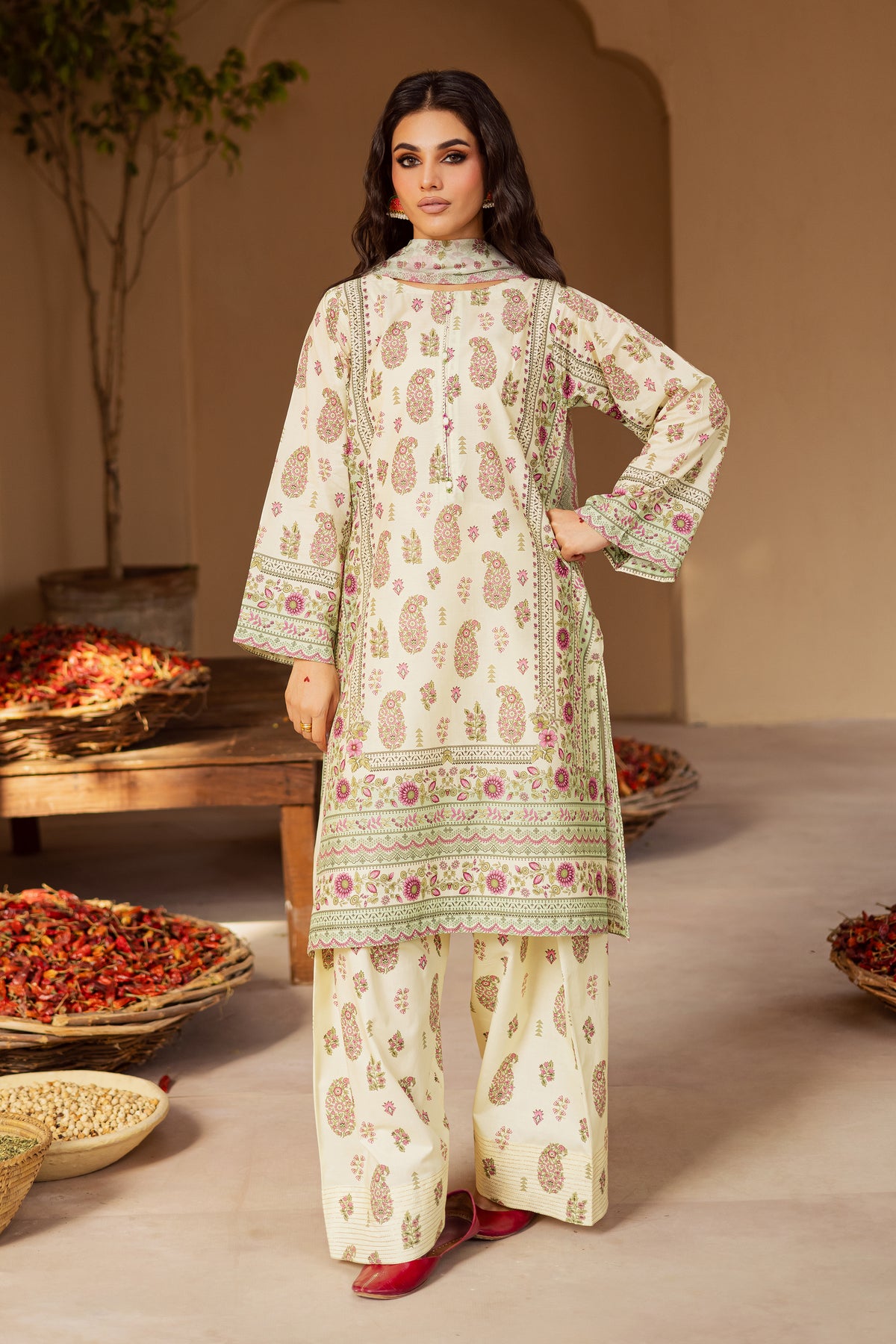 Paired with a printed cambric shalwar, the outfit combines comfort with style for versatile wear.