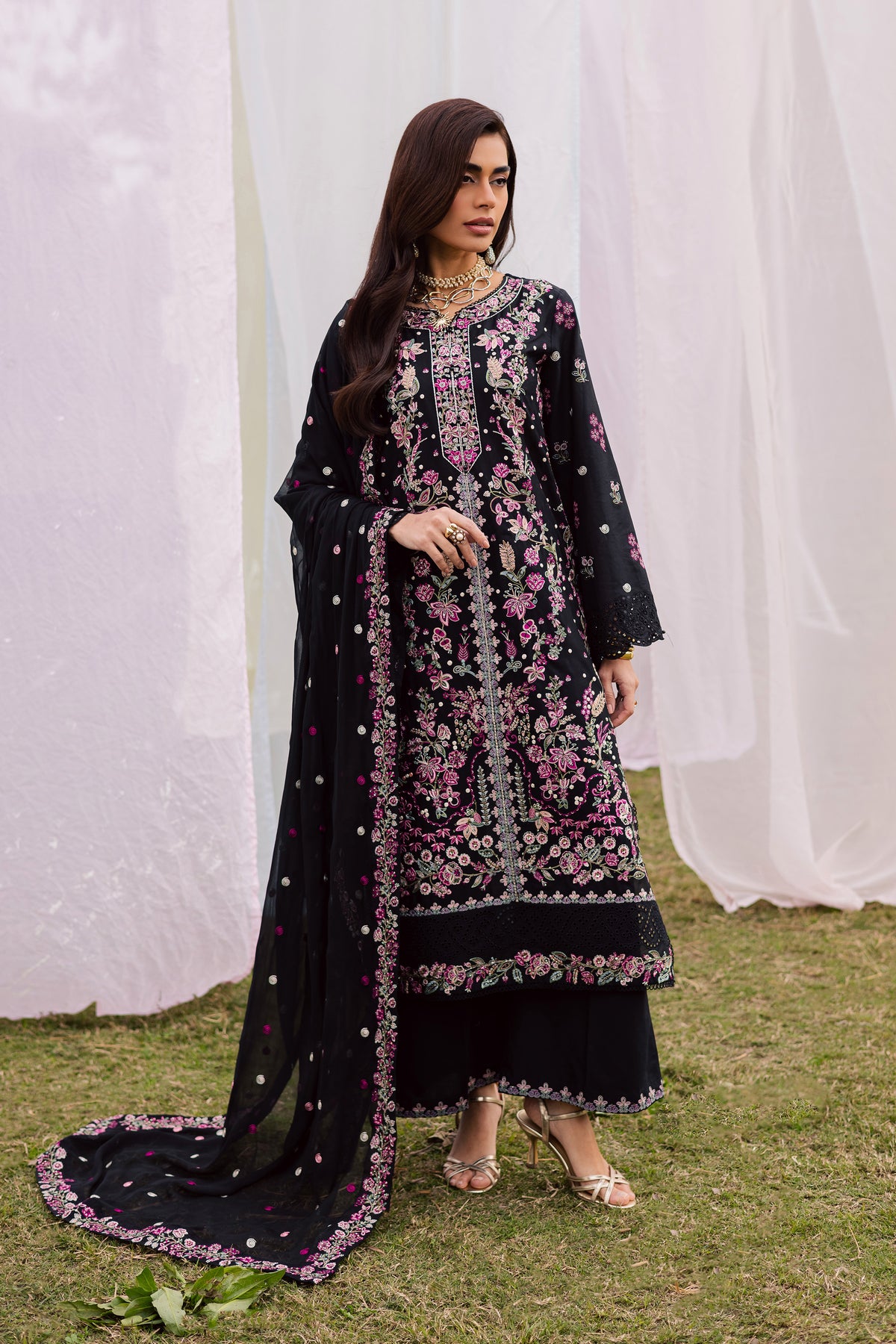 A crinkle dupatta completes the look, adding softness and refined movement to this timeless Eid ensemble.