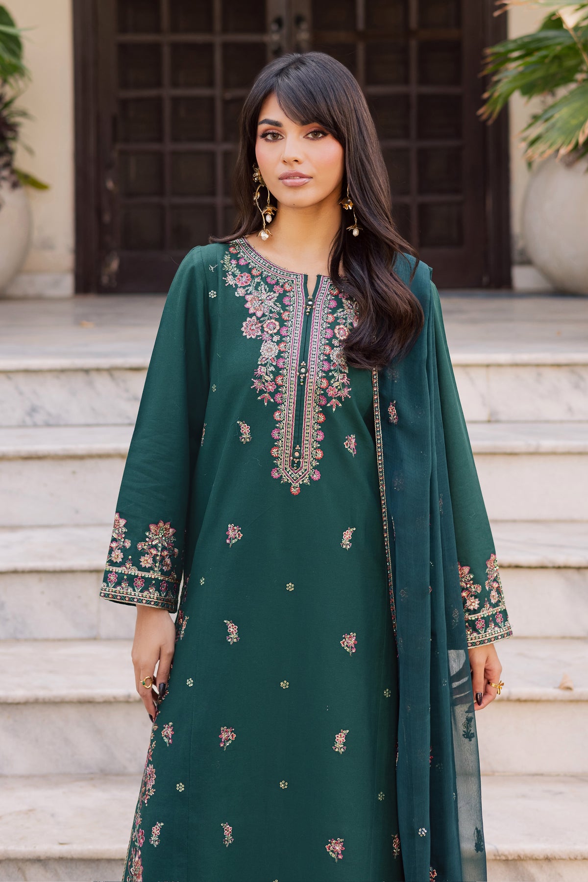 The outfit is completed with a crinkle embroidered dupatta, adding harmony and sophistication to the overall look, perfect for special occasions.
