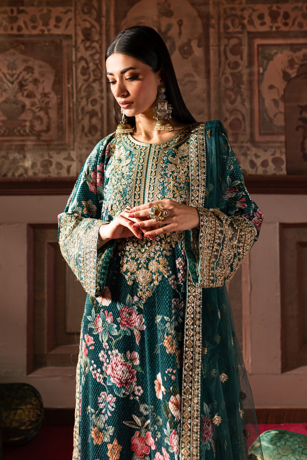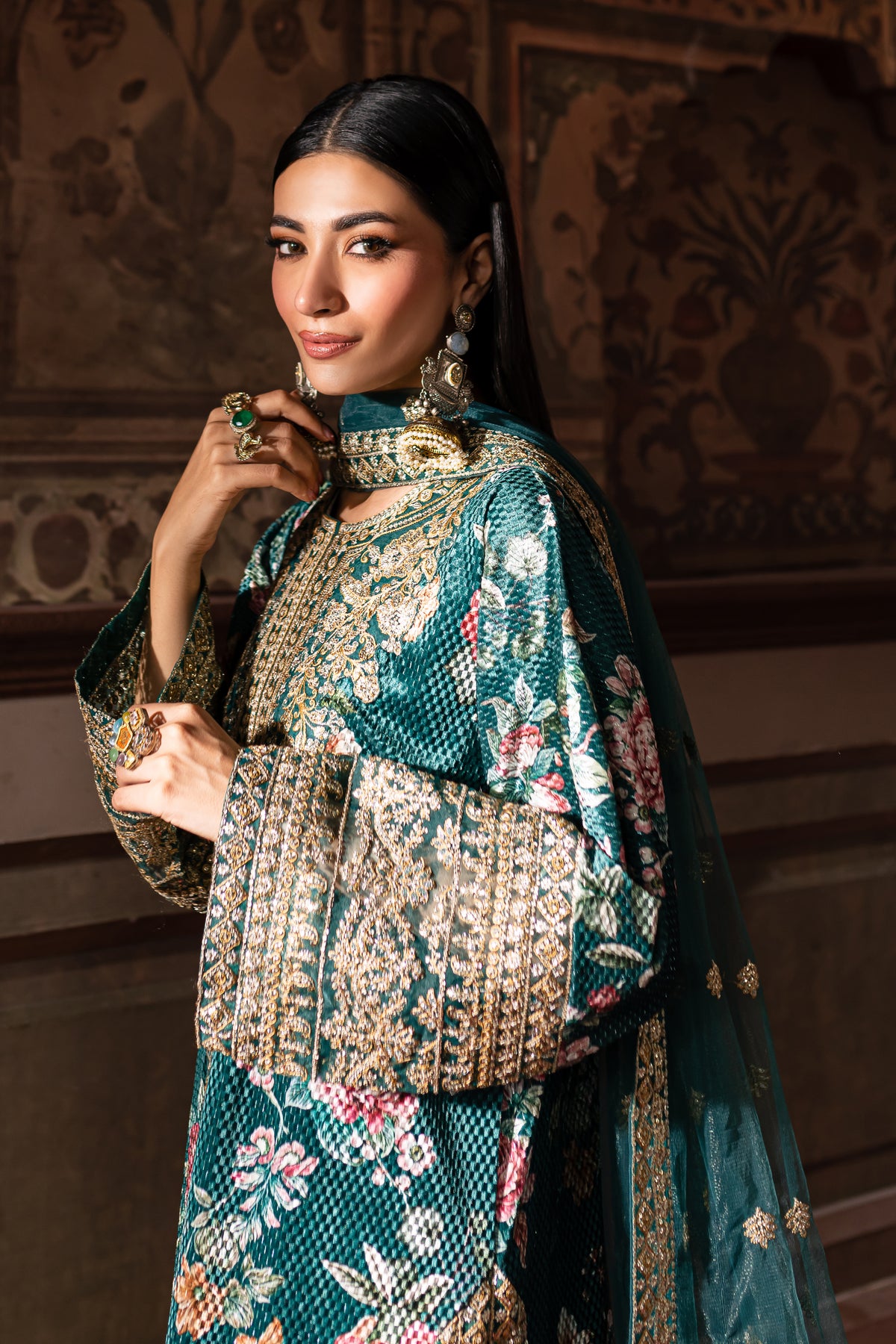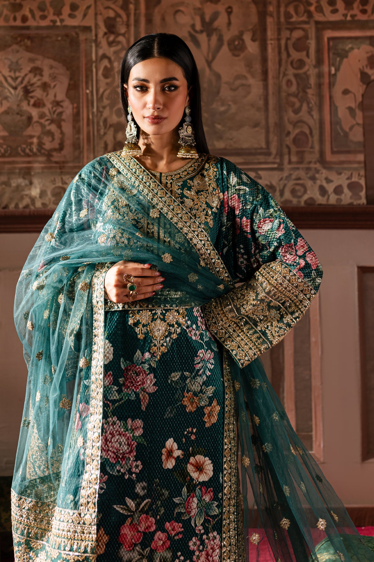 Paired with a blingy, embroidered net dupatta, this ensemble radiates luxury and glamour, making it the perfect choice for formal events.