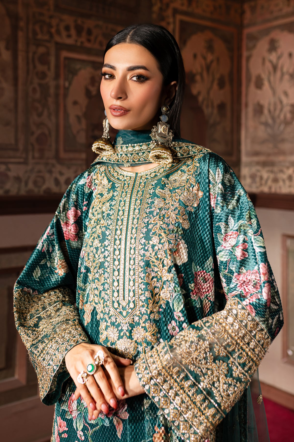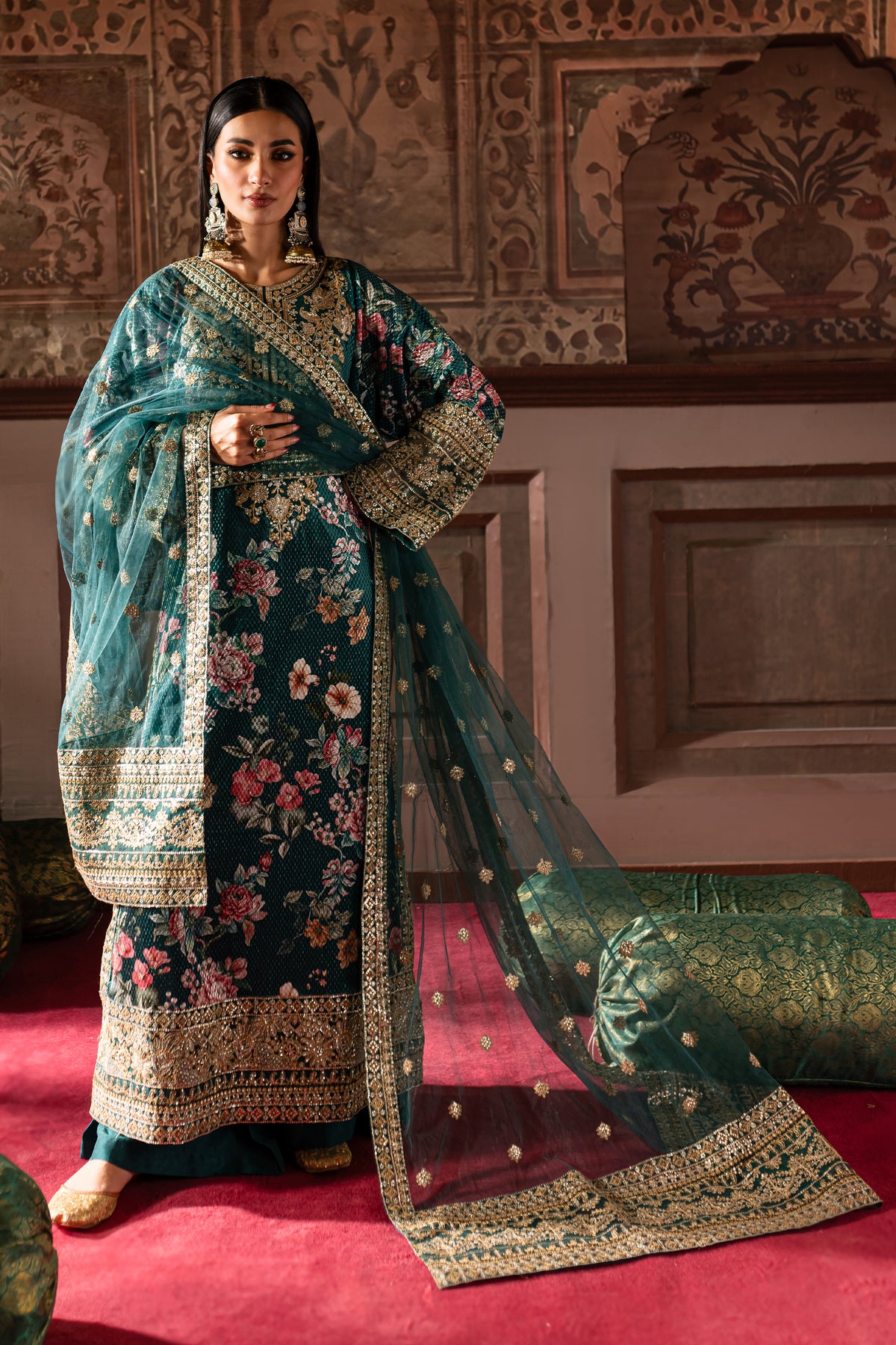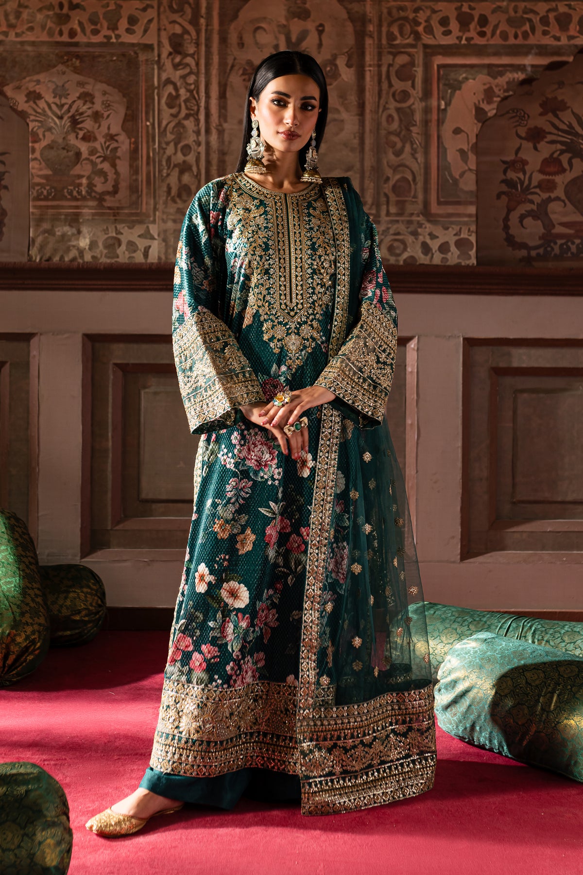 Paired with a blingy, embroidered net dupatta, this ensemble radiates luxury and glamour, making it the perfect choice for formal events.