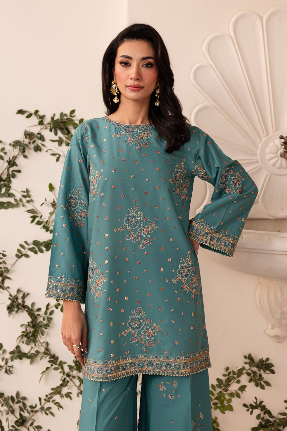 Green Cherry 3Pc - Embroidered Sharara Pret