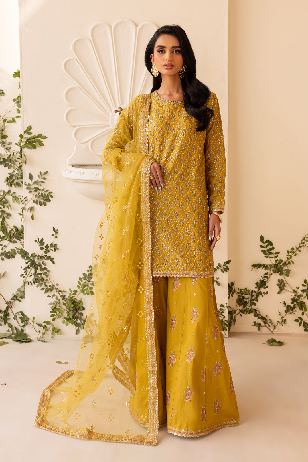 Gold Tibetan 3Pc - Embroidered Sharara Pret