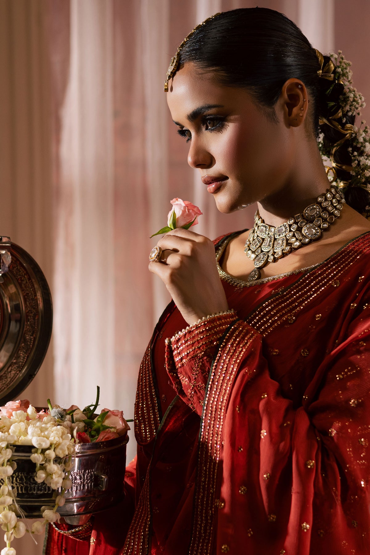 Crusteez 3Pc - Chiffon Wedding Frock BATIKLuxePRET2025  BATIK   S / Rust / Chiffon & Raw Silk-M / Rust / Chiffon & Raw Silk-L / Rust / Chiffon & Raw Silk