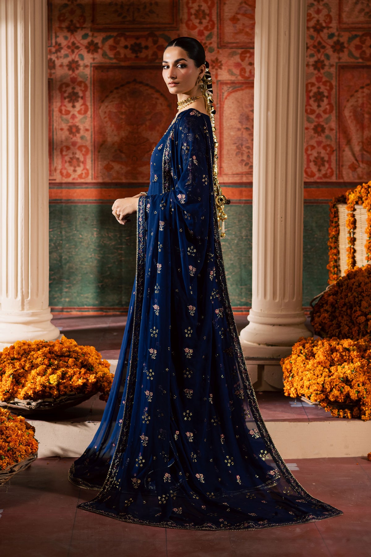 Earliblue 3Pc - Chiffon Wedding Frock BATIKLuxePRET2025  BATIK   S / Blue / Raw Silk & Chiffon-M / Blue / Raw Silk & Chiffon-L / Blue / Raw Silk & Chiffon