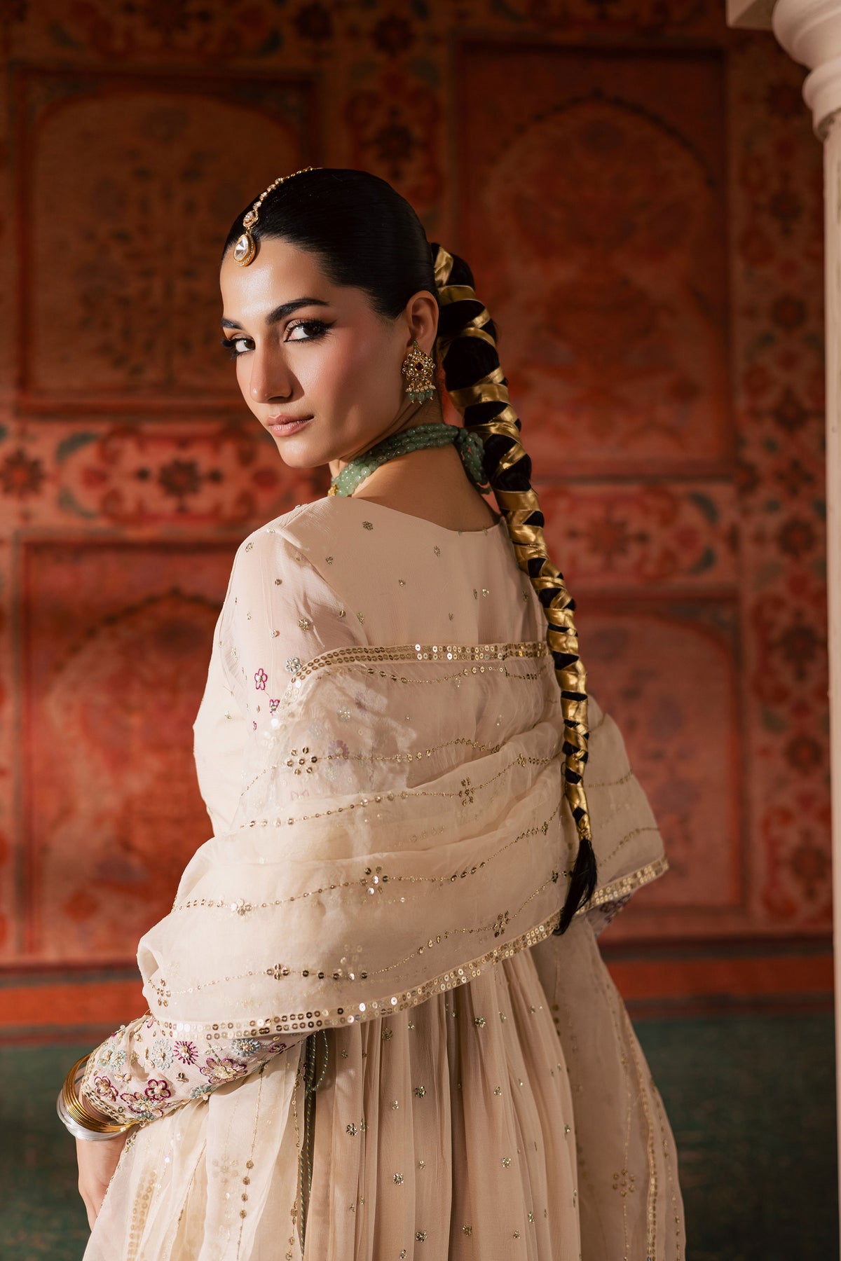 Fiona Lux 3Pc - Chiffon Wedding Frock BATIKLuxePRET2025  BATIK   S / Pearl White / Raw Silk & Crinkle-M / Pearl White / Raw Silk & Crinkle-L / Pearl White / Raw Silk & Crinkle