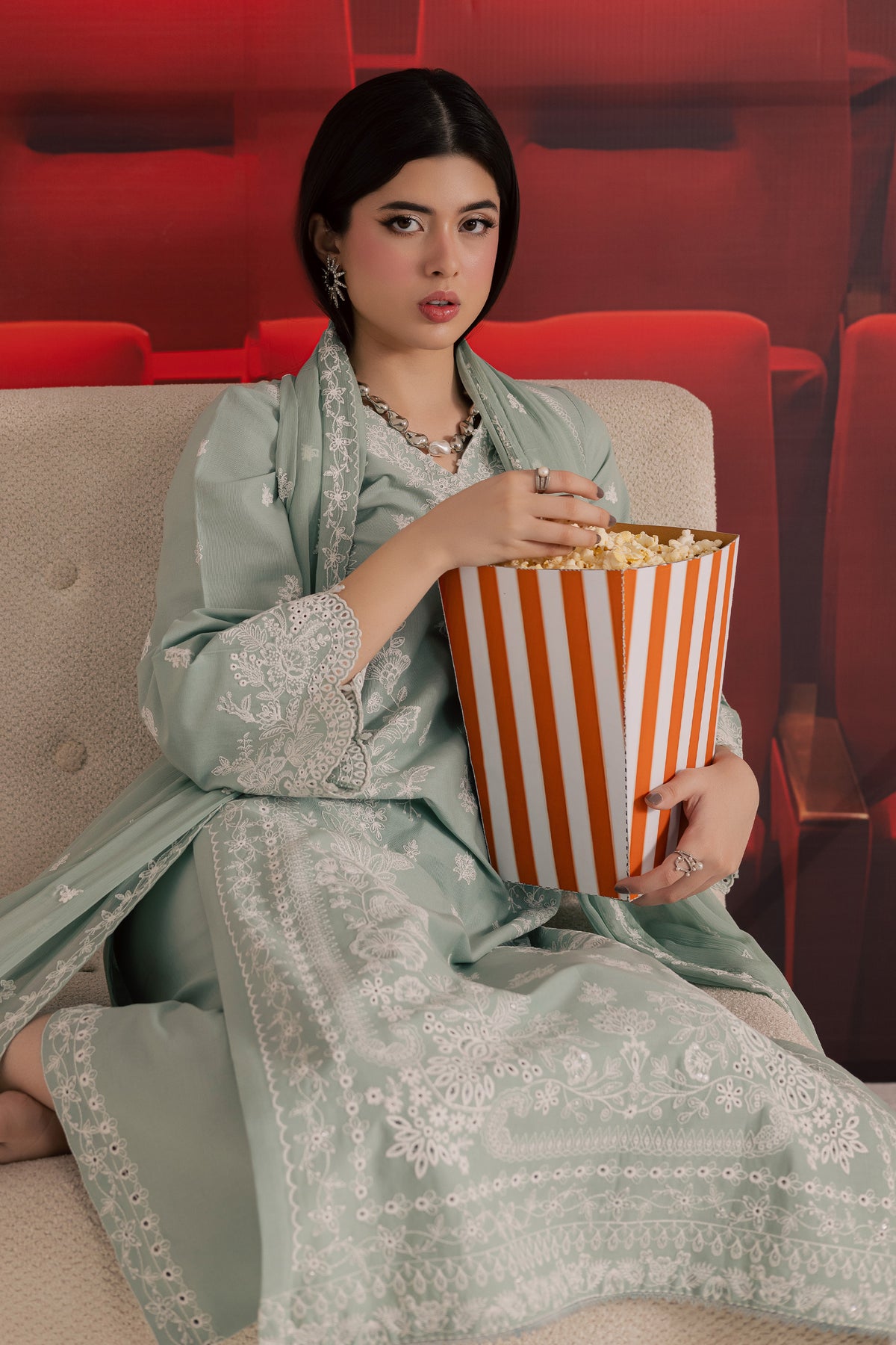A crinkle dupatta completes the ensemble, adding softness and a graceful drape that ties the entire outfit together.