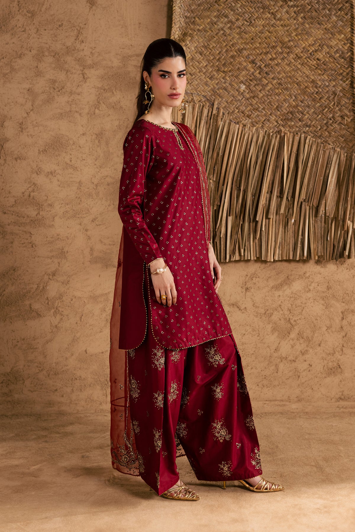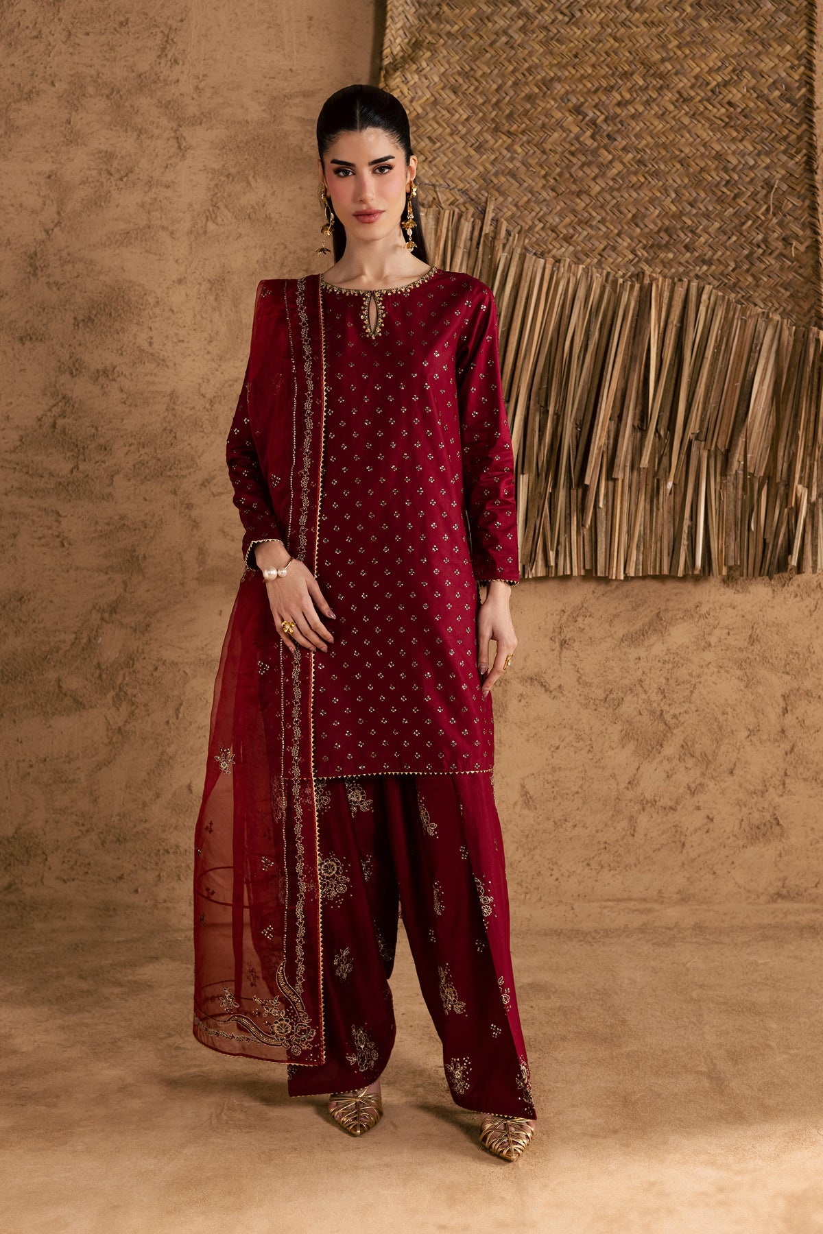 Red Monaco 3Pc - Festive Eid Pret BATIKEID2026  BATIK   XS / Burgundy / Giza-S / Burgundy / Giza-M / Burgundy / Giza-L / Burgundy / Giza-XL / Burgundy / Giza